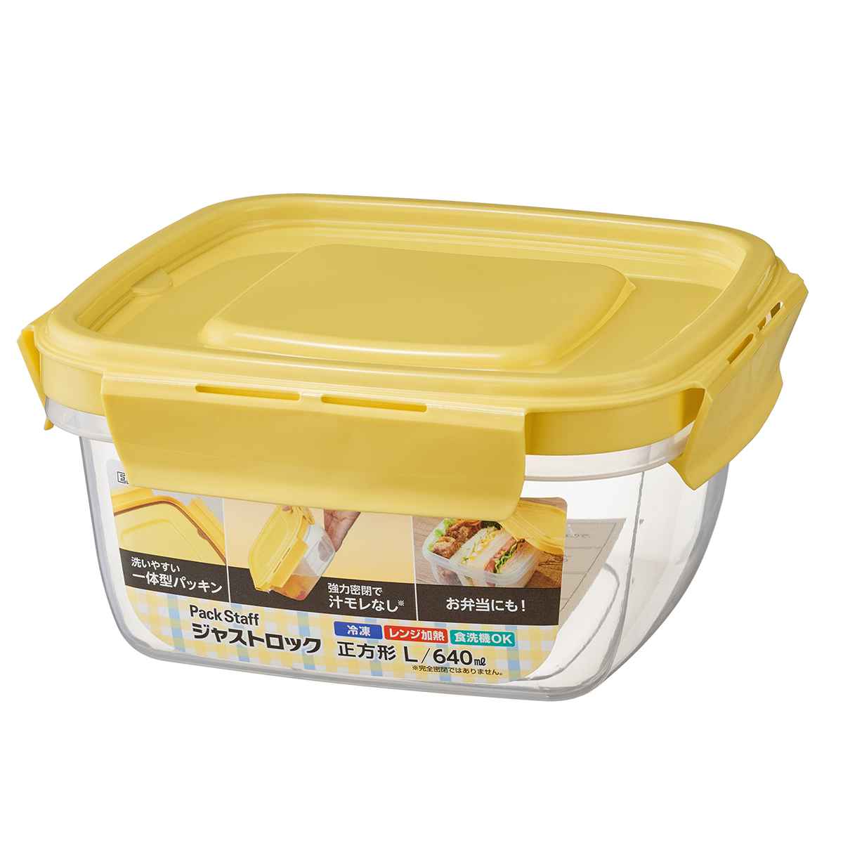 保存容器 640ml パックスタッフ ジャストロック 正方形 長方形 Lサイズ ( 食品保存容器 プラスチック容器 フードストッカー レンジ対応 食洗機対応 日本製 保存ケース 密閉 中が見える 蓋 角型 4点ロック 冷蔵 冷凍 スタッキング ) 【正方形】