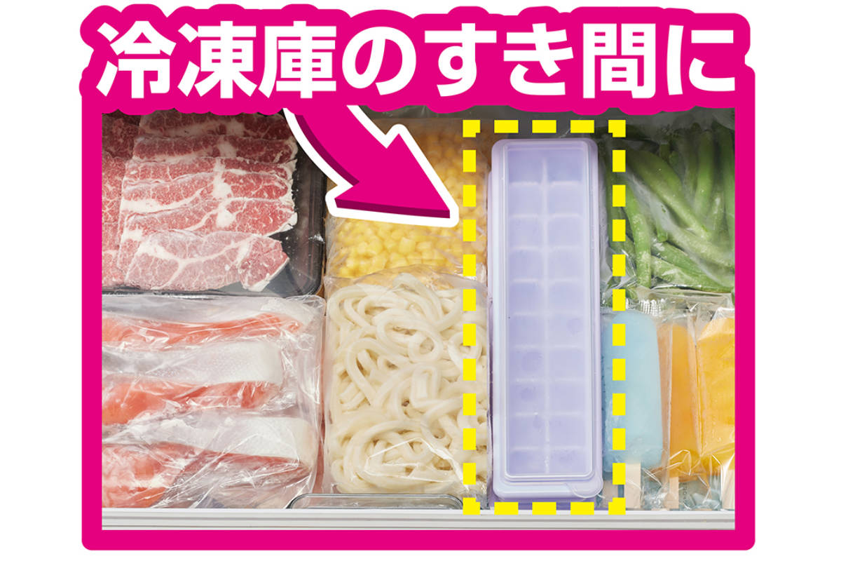 冷蔵庫のすき間に収まるスリムな製氷皿