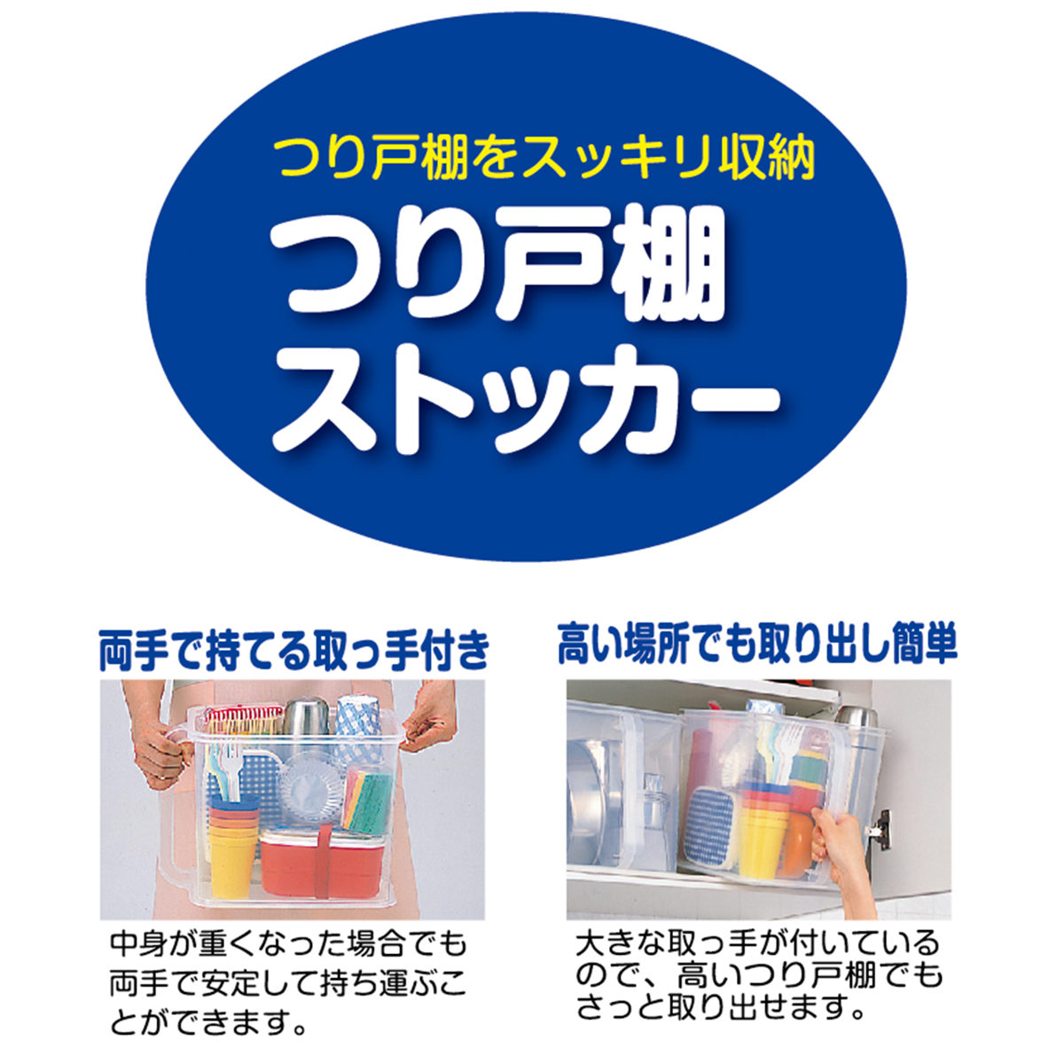 キッチン 収納ケース 吊戸棚 ストッカー ワイド 9.9L 取っ手付き ( キッチン収納ケース キッチンストッカー 吊戸棚ボックス ハンドル付きストッカー 日本製 戸棚収納 収納BOX 吊り戸棚 収納 整理ケース 透明 中身が見える )