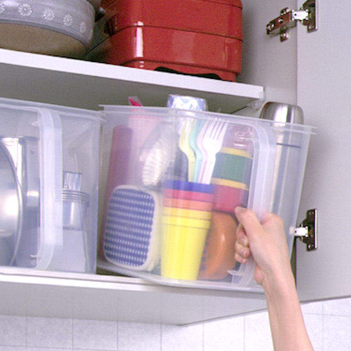 キッチン 収納ケース 吊戸棚 ストッカー ワイド 9.9L 取っ手付き ( キッチン収納ケース キッチンストッカー 吊戸棚ボックス ハンドル付きストッカー 日本製 戸棚収納 収納BOX 吊り戸棚 収納 整理ケース 透明 中身が見える )のレビュー