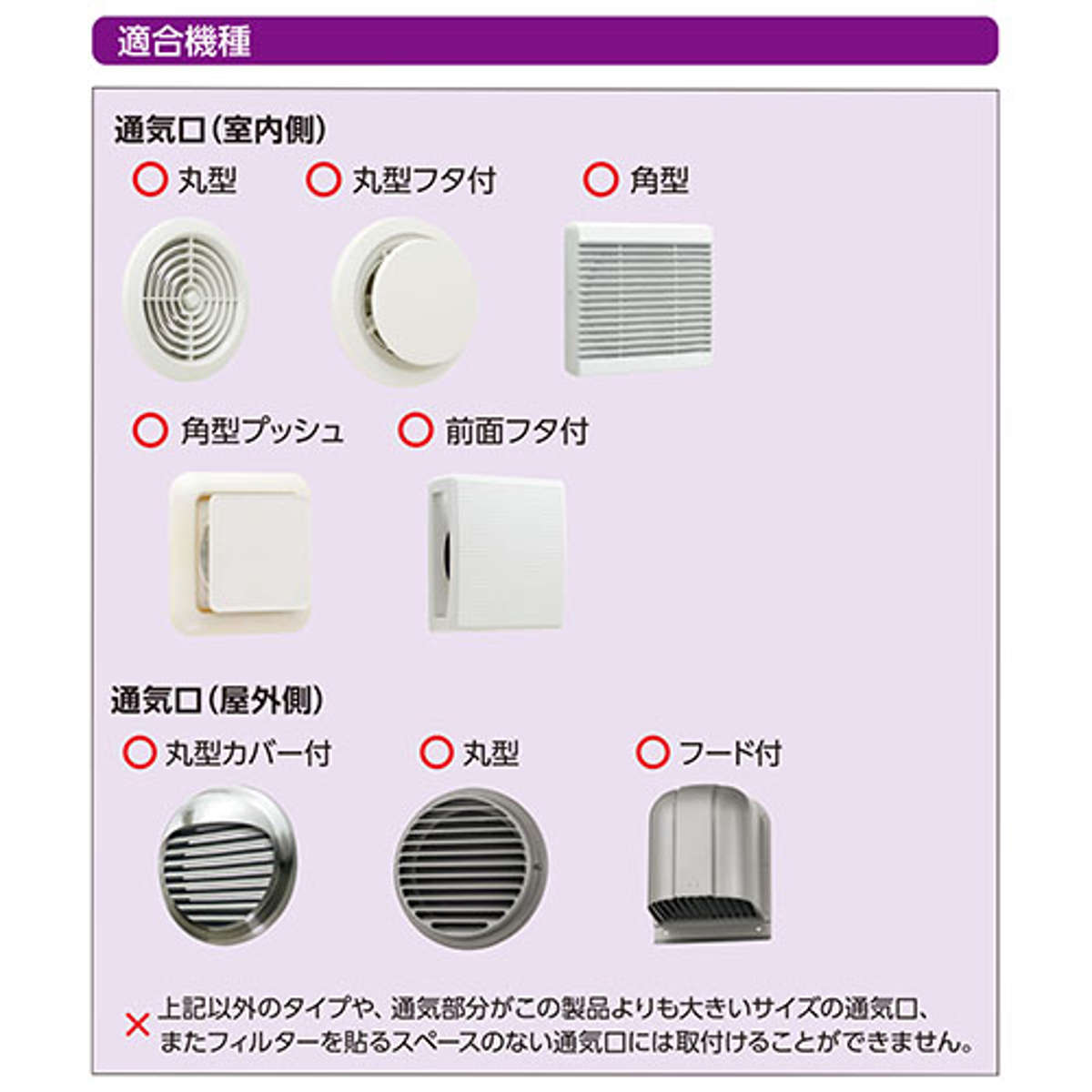 通気口の外側にも内側にも貼れる兼用タイプです。