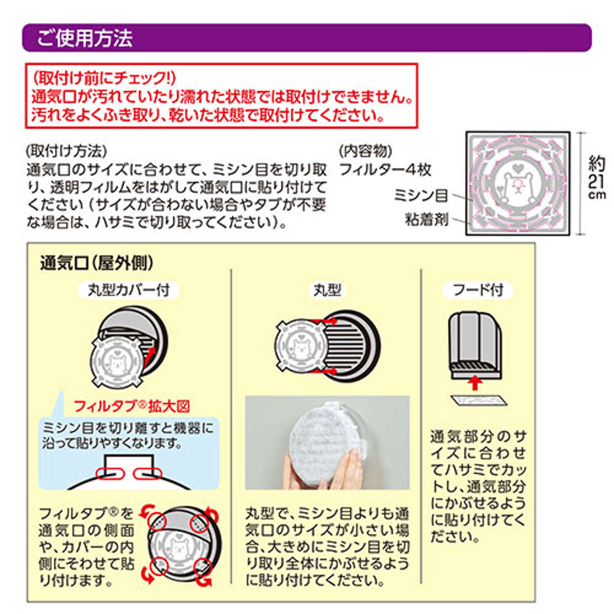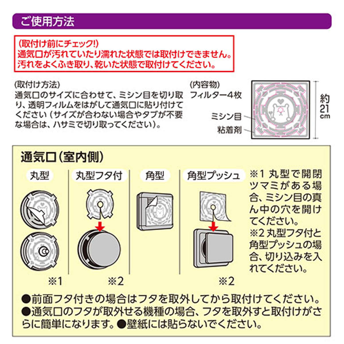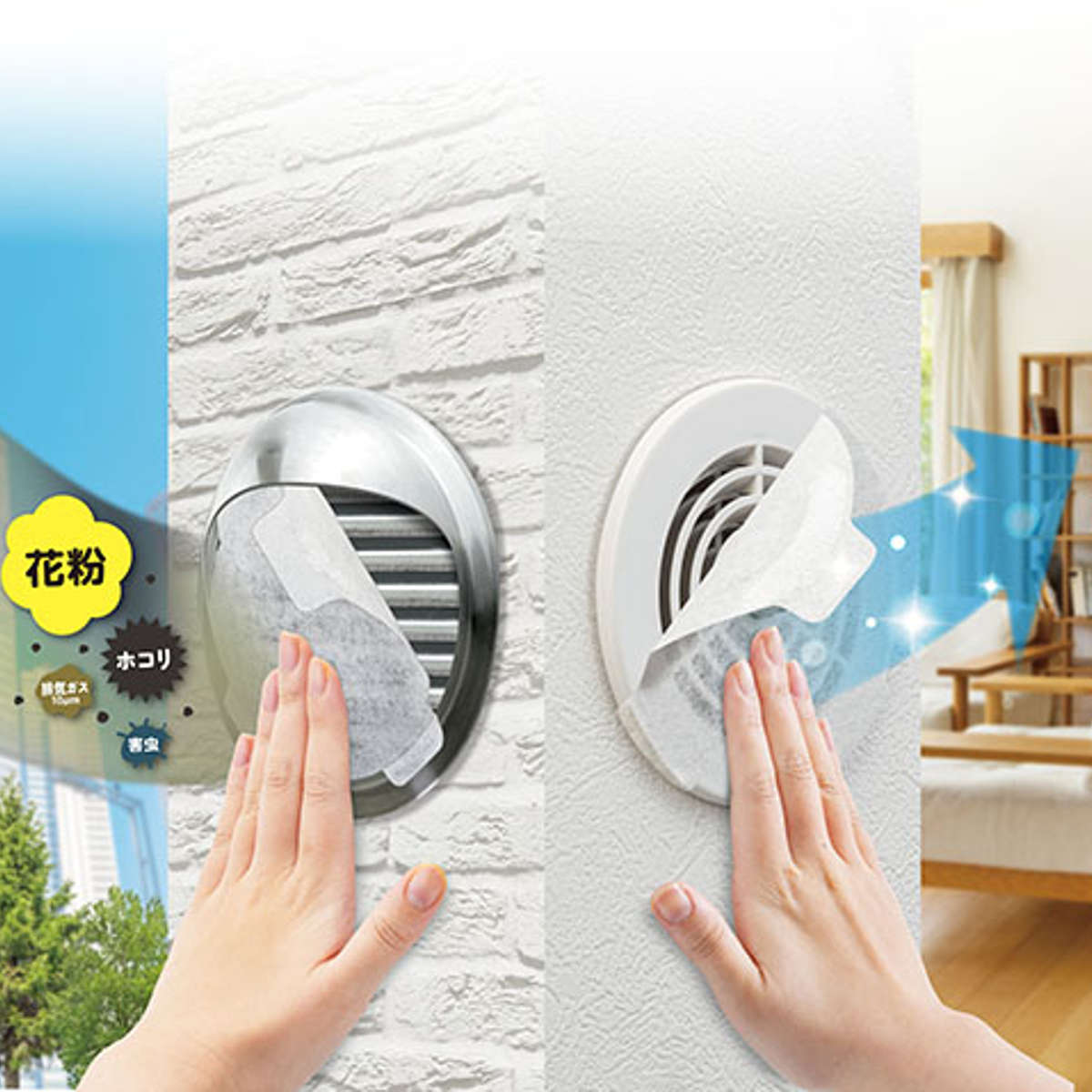 通気口フィルター アレルブロックフィルター 通気口用 4枚入り ( 日本製 通気口 フィルター 屋外 室内 カバー 通気口カバー ほこり 花粉 害虫 排気ガス 内外兼用 ホコリとり 簡単 シールタイプ 貼るだけ カットOK 丸型 角型 )