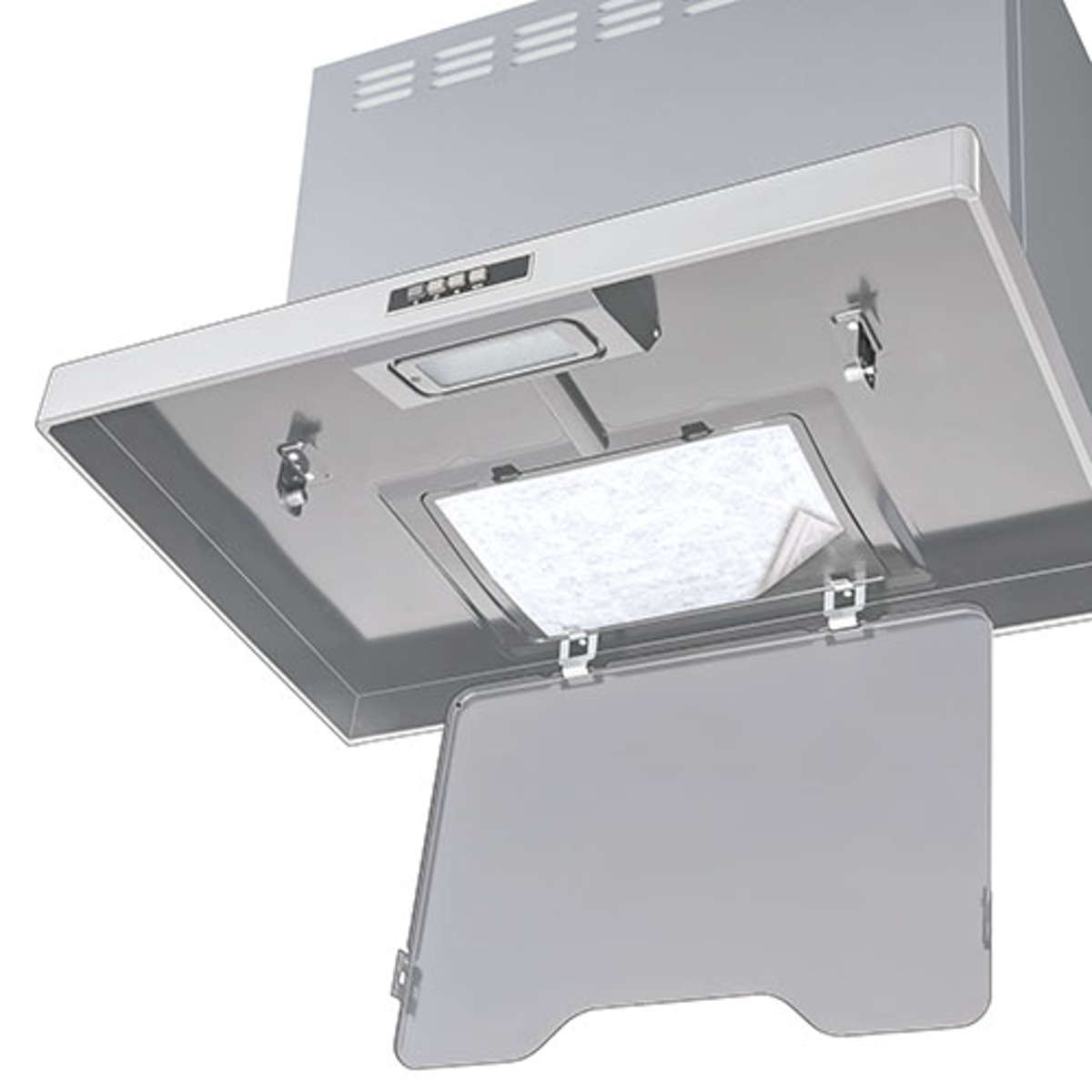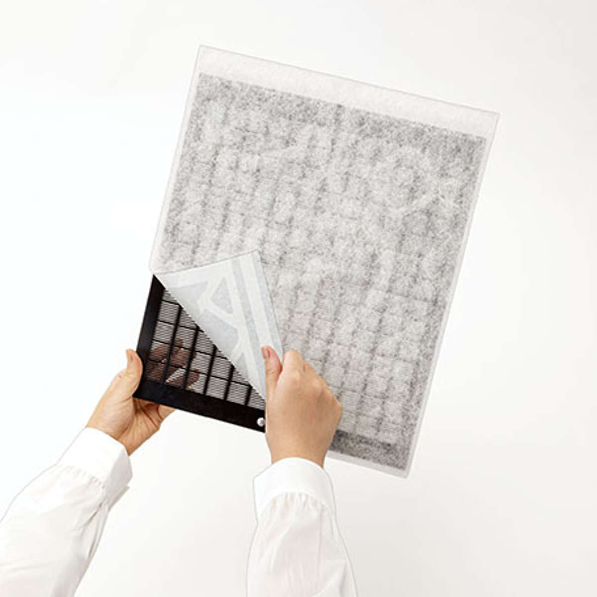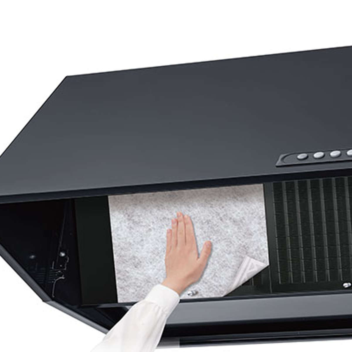 吸油力の高い難燃性不織布を使用しており、レンジフード内部への油汚れの侵入を防いで掃除の手間を軽減します。整流板付きレンジフードの内側にも使用可能です。