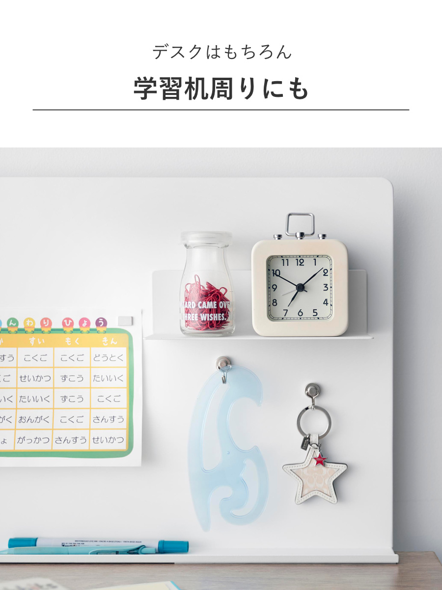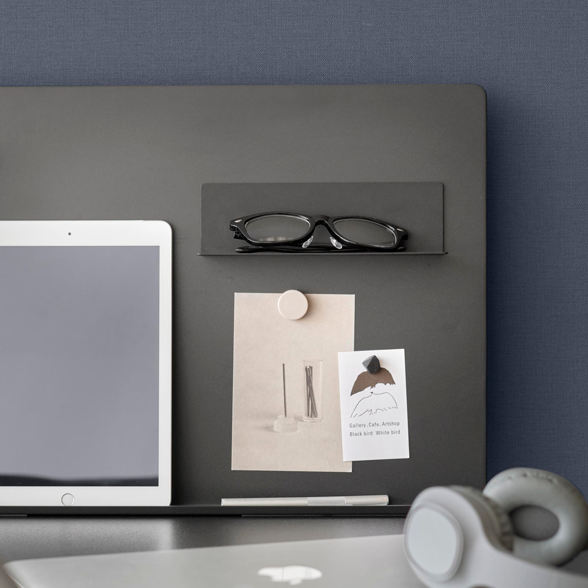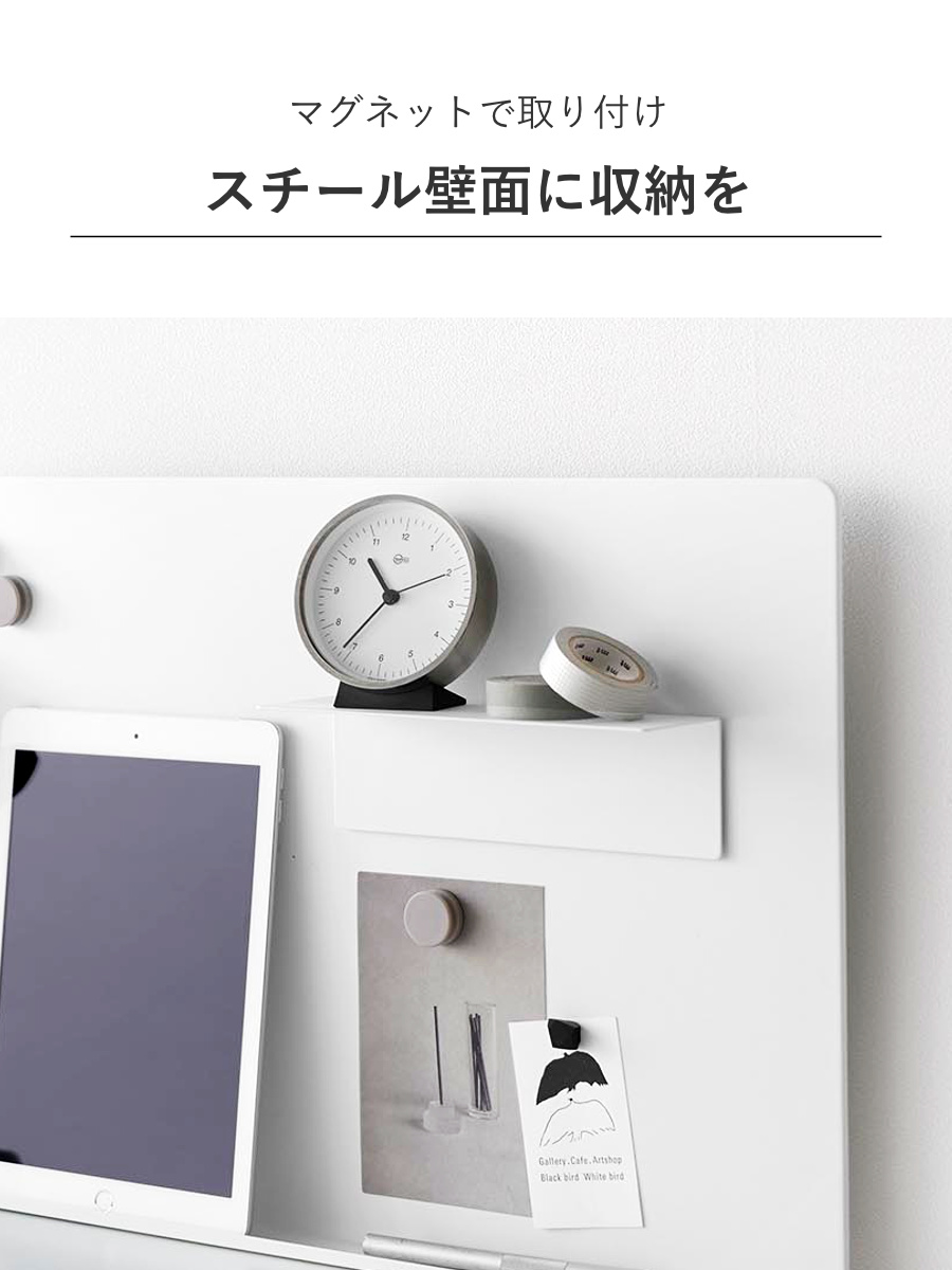 スチール壁面のお好みの場所に取り付けできる便利なマグネット小物棚です。別売りのスチールパネルやマグネットペンスタンドを一緒に使用すれば、デスク周りをスッキリ整理することができます。