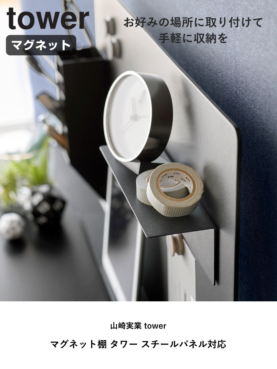 山崎実業 tower マグネット棚 タワー スチールパネル対応 ( 4903208100946 タワーシリーズ 棚 マグネット スチールパネル用 スチール製 ラック スチール棚 マグネット小物棚 磁石 カスタマイズ ) 【ブラック】