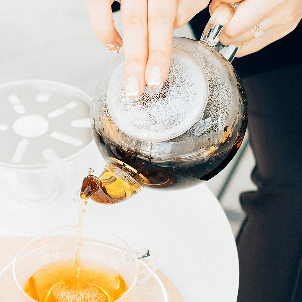 ポット本体がガラス製なので、茶葉が開く様子やドリンクの色をじっくりと眺めて愉しめます。フルーツティー、レモンティーや日本茶など、様々なドリンクに合わせやすいデザインです。