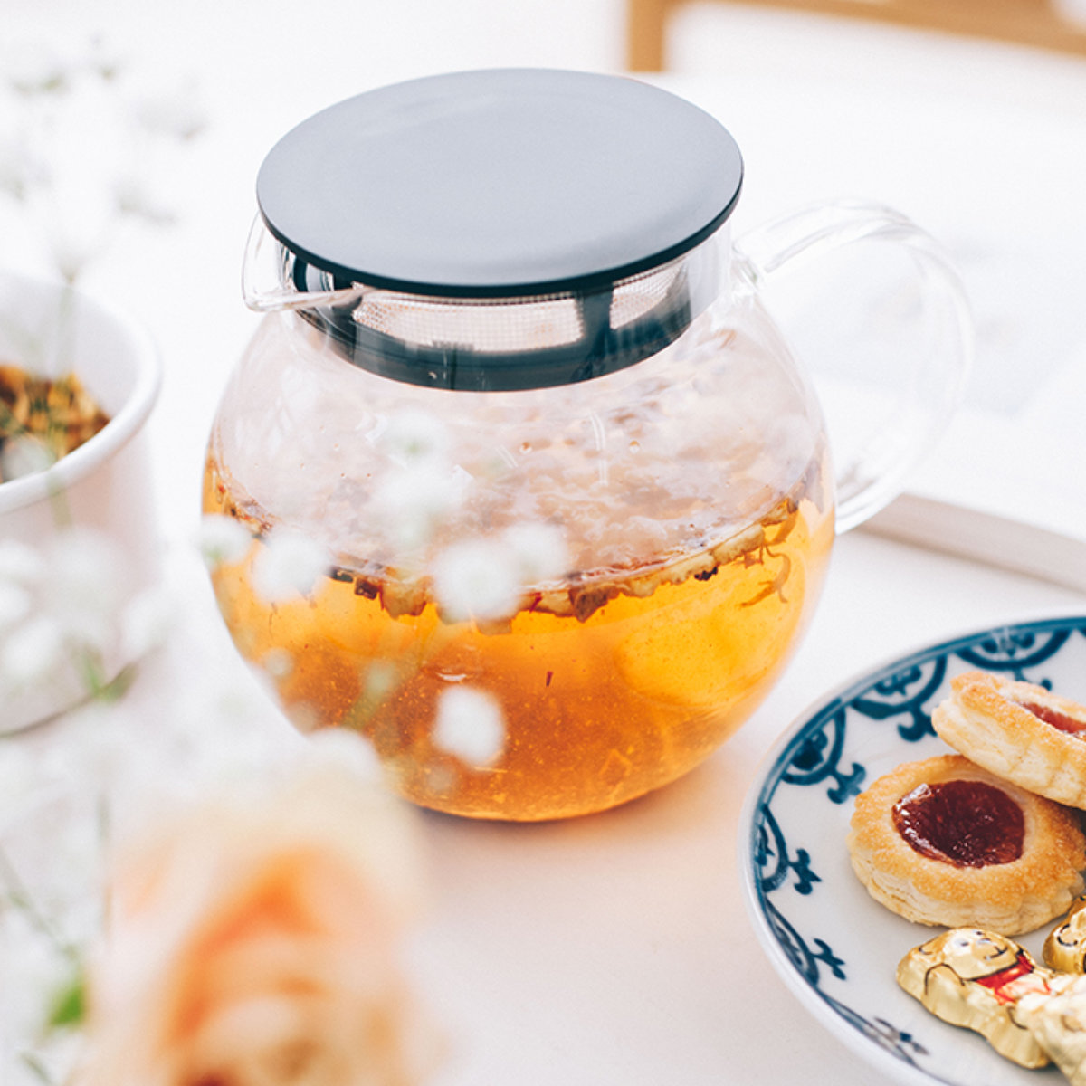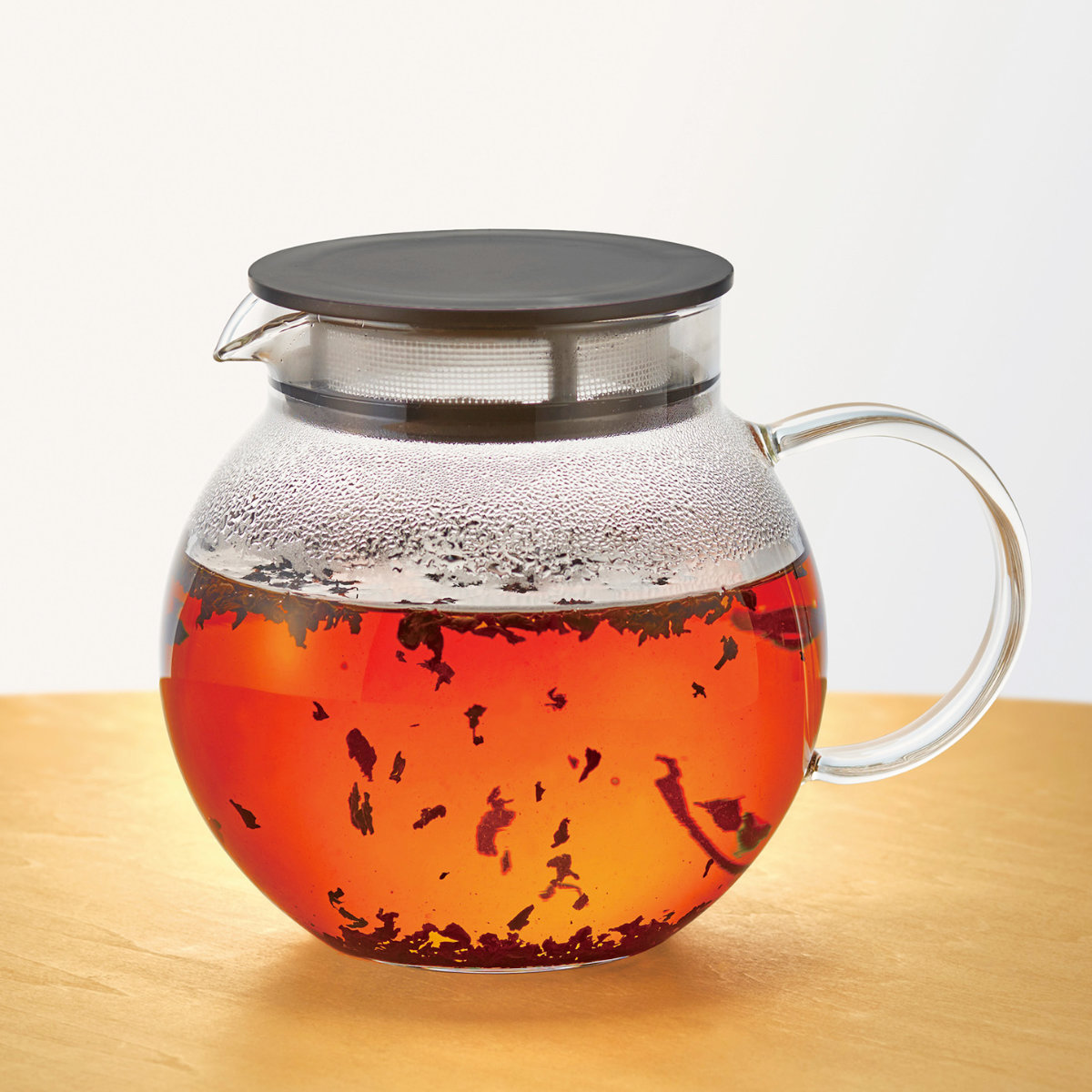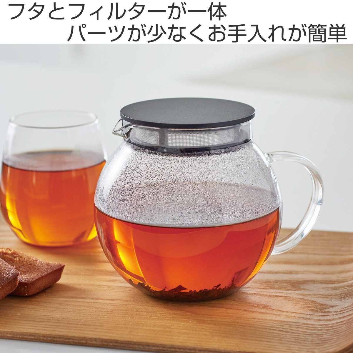 手軽に茶葉本来の美味しさを愉しめる丸い形状のティーポット600mlです。フタ部分が茶こしになっているので、しっかり茶葉が開きます。約3杯分を入れるのにちょうどいいサイズ感です。