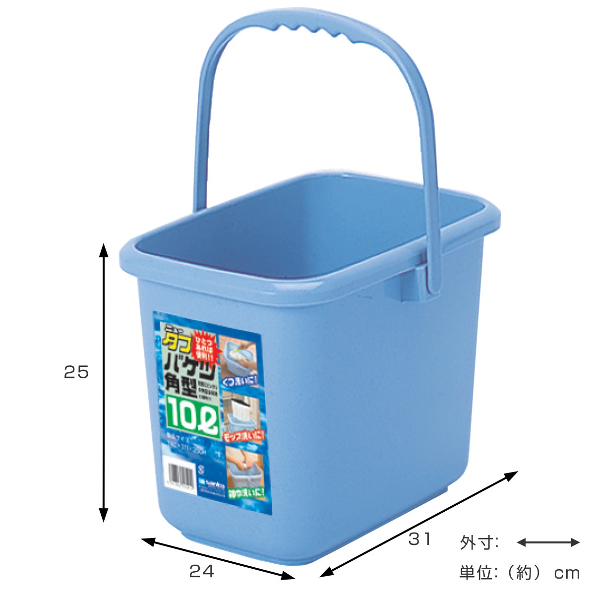 バケツ 10L 角型 握りやすい ニュー タフバケツ ( ばけつ 10リットル プラスチック 掃除 丈夫 四角 足湯 介護 フットケア 靴洗い 掃除用品 )