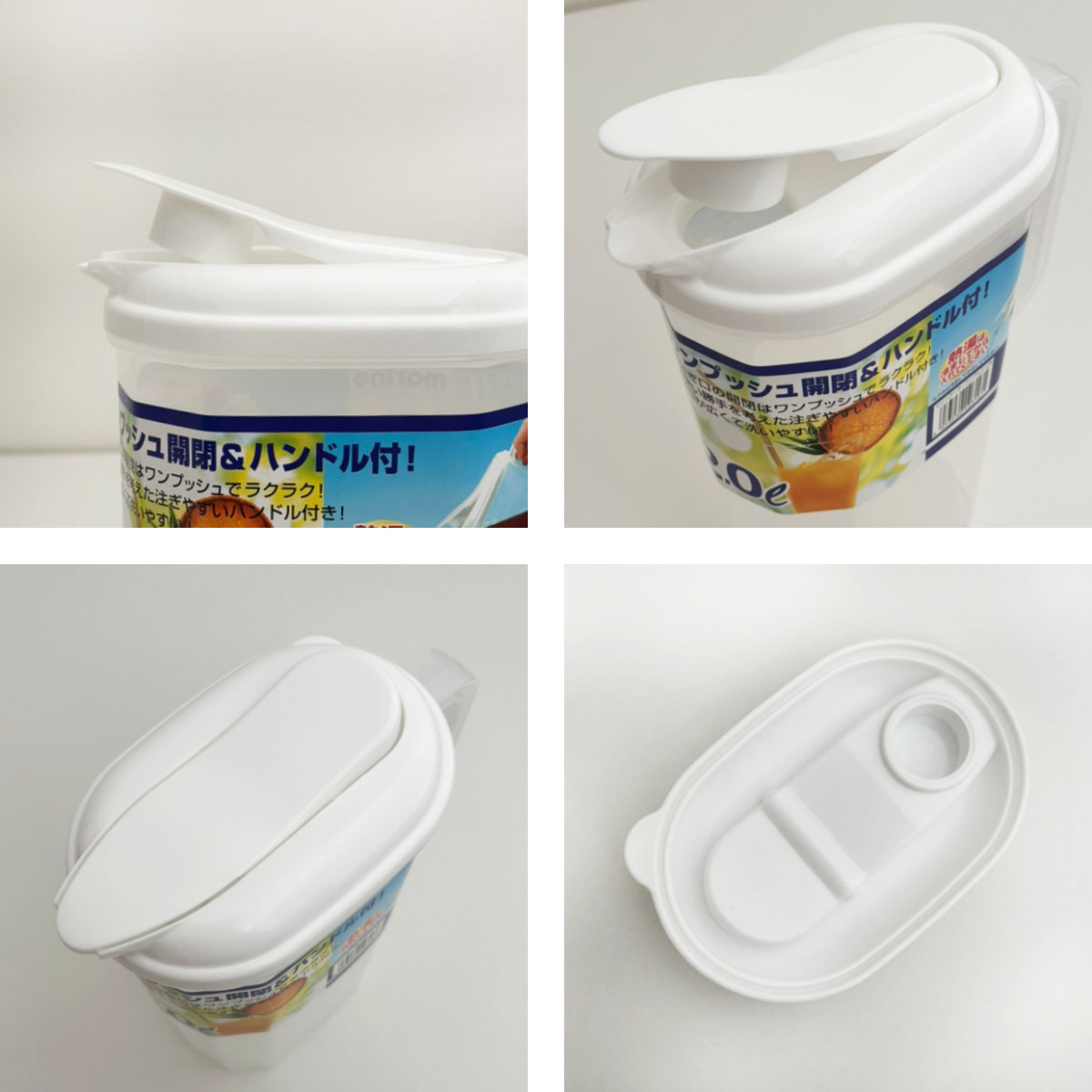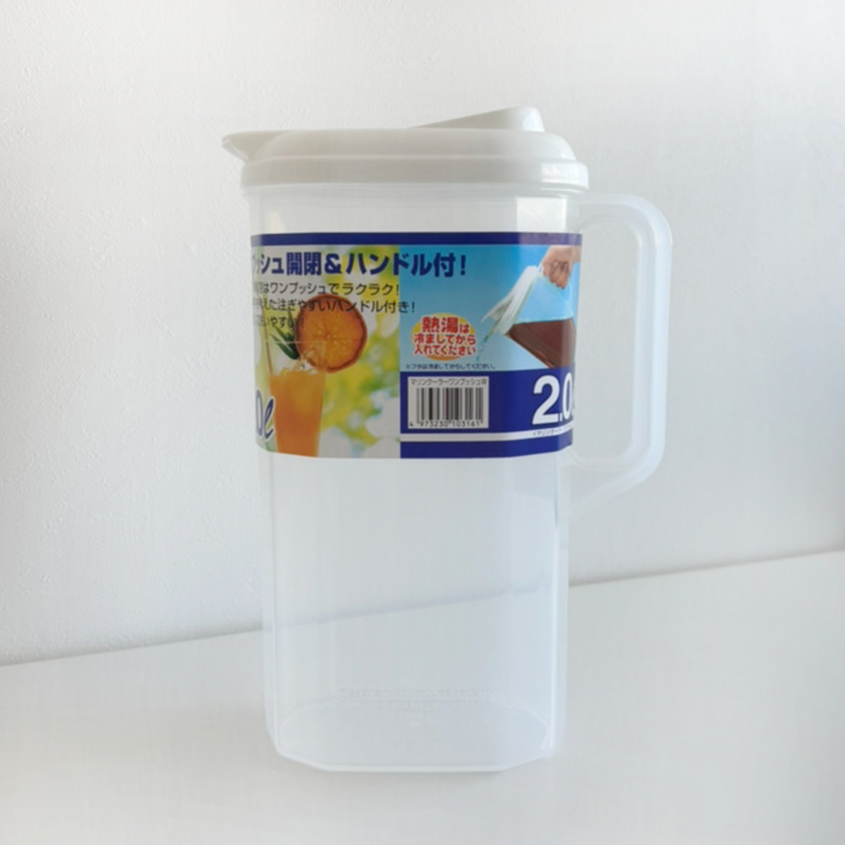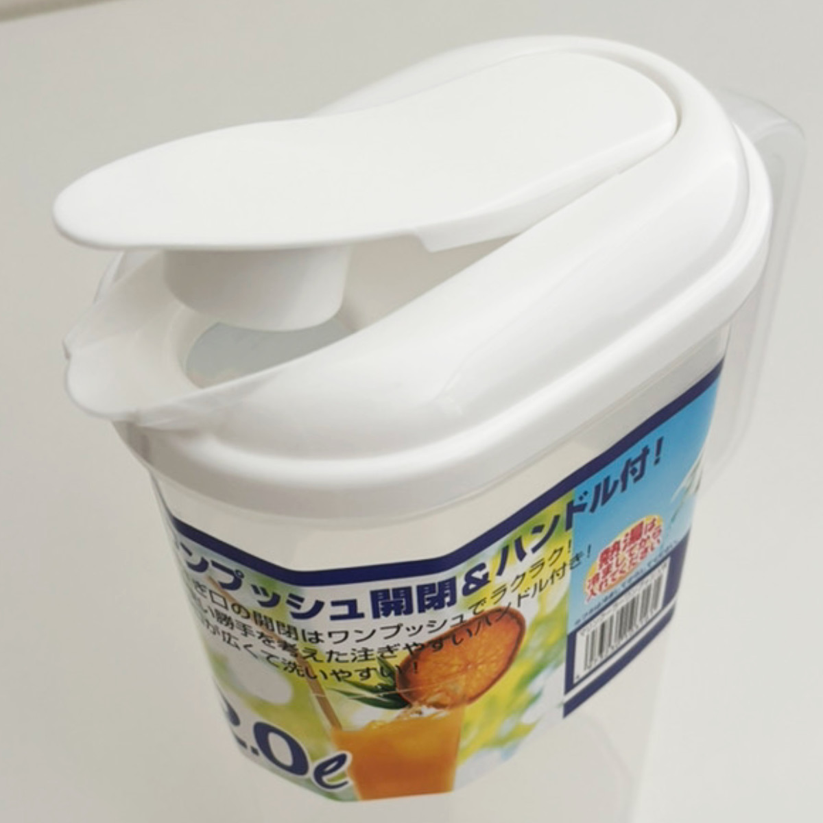 大容量2Lで家族で使える冷水筒です。冷蔵庫のドアポケットにも収まりやすく、使い勝手も抜群。片手で開け閉めができるワンタッチ式なので、お子様でも使いやすい作りです。
