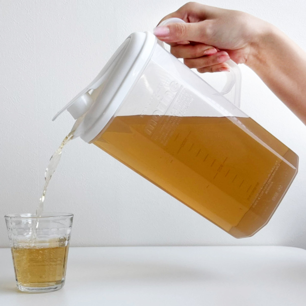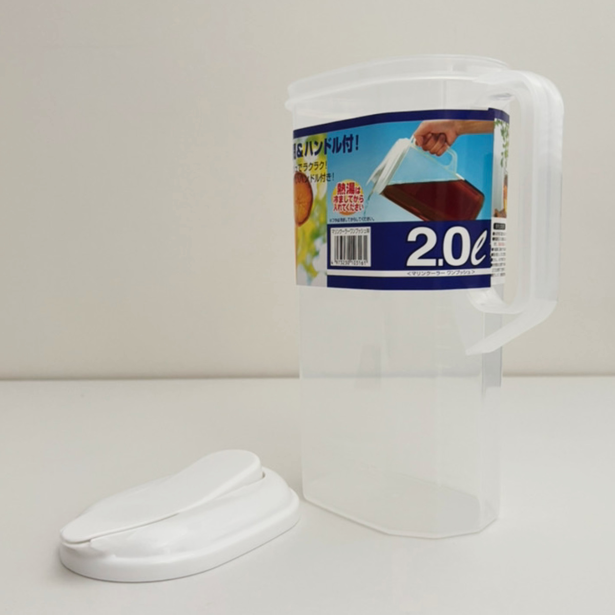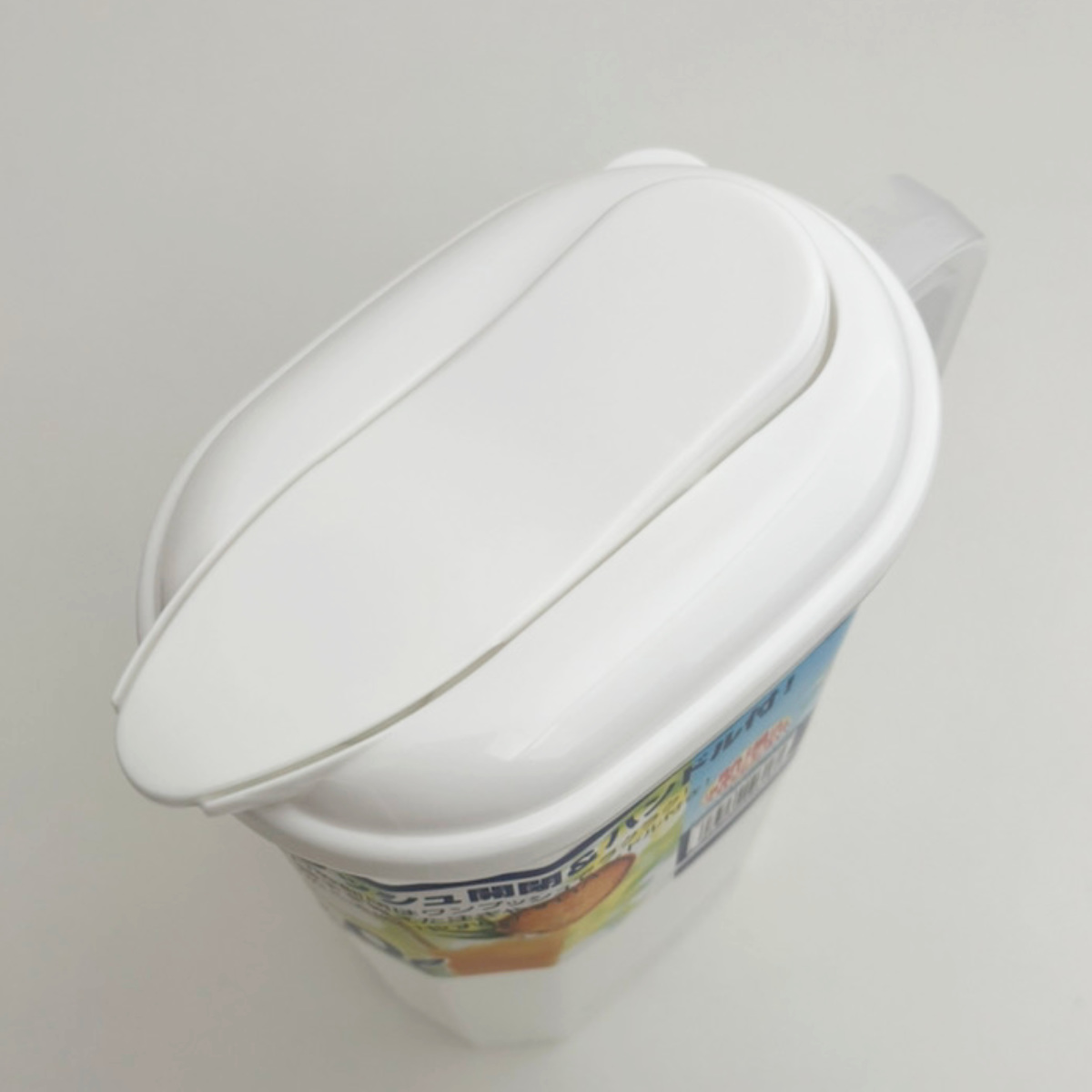 大容量2Lで家族で使える冷水筒です。冷蔵庫のドアポケットにも収まりやすく、使い勝手も抜群。片手で開け閉めができるワンタッチ式なので、お子様でも使いやすい作りです。