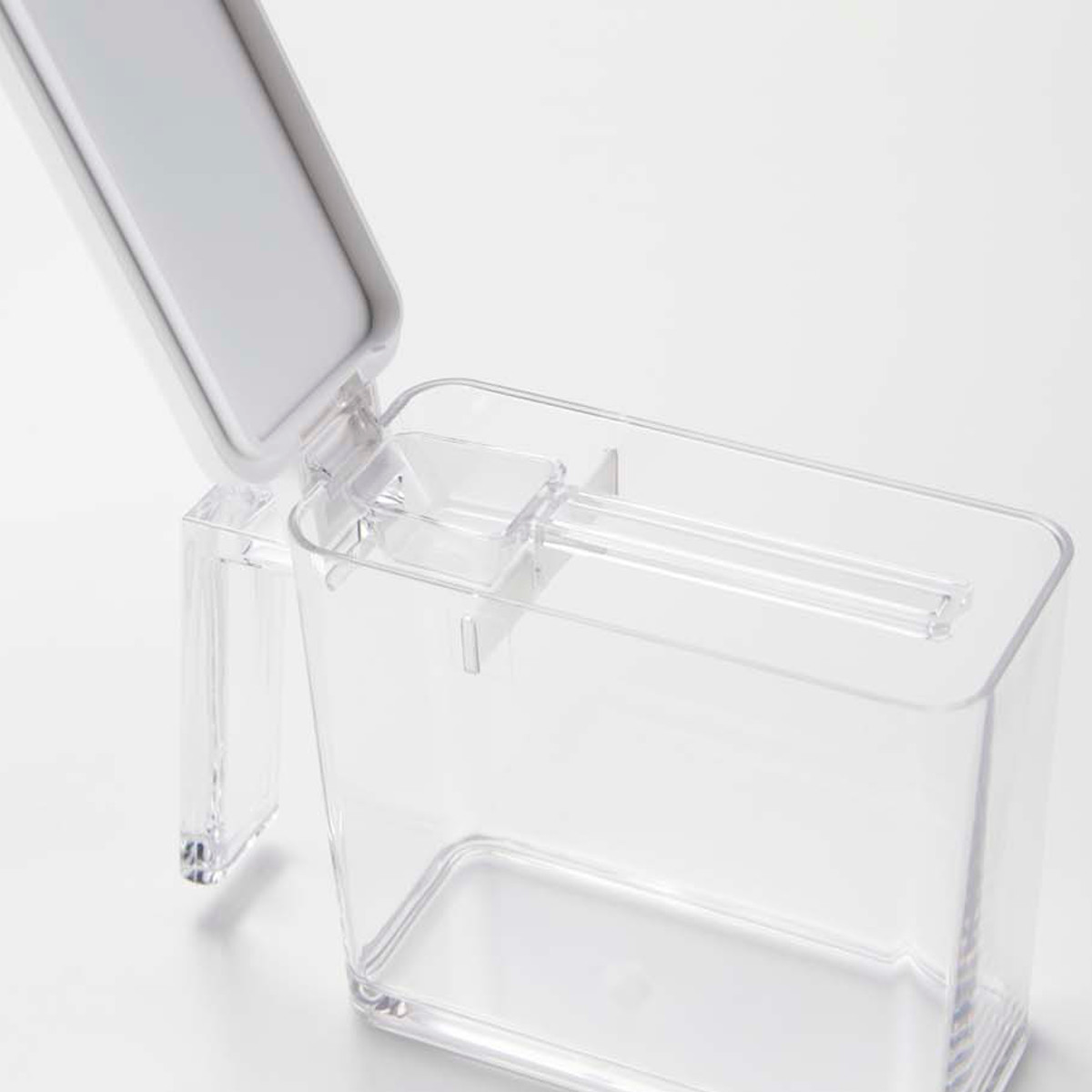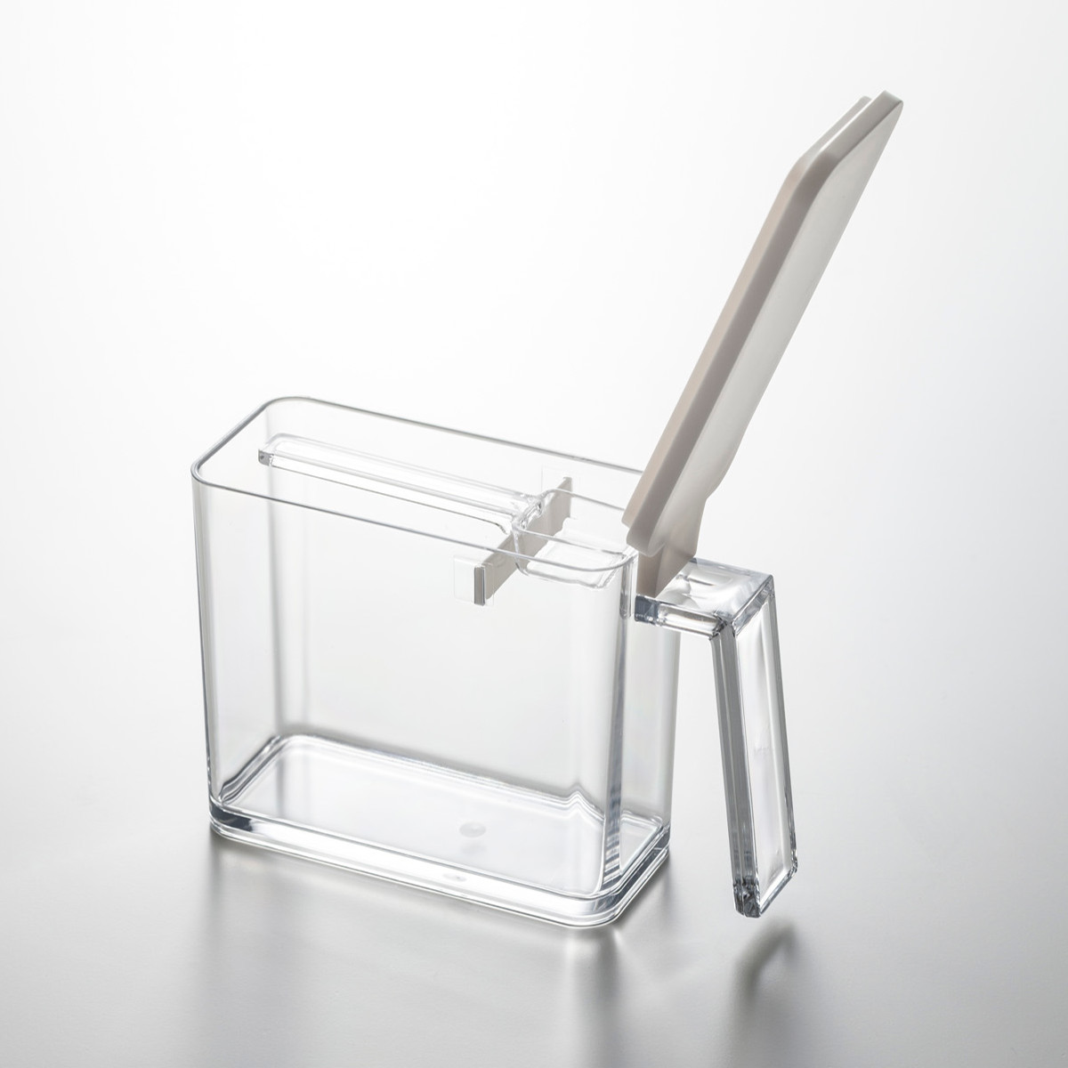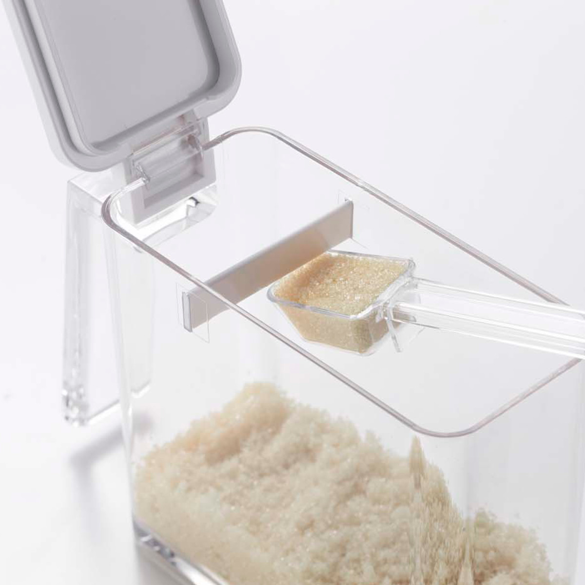 すり切り板の上にスプーンを収納できるので、粉類に埋もれず持ち手が汚れません。