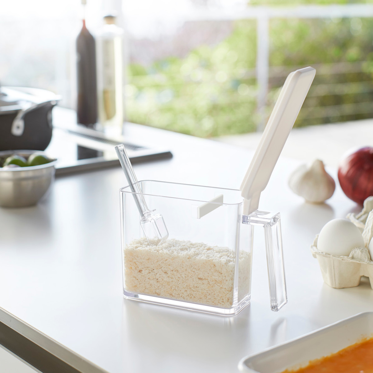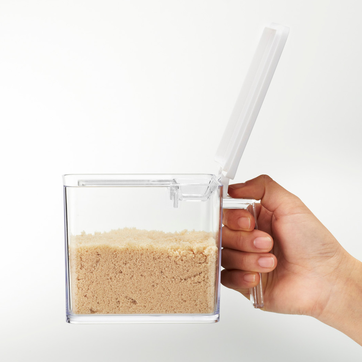 よく使う砂糖や塩の保存に便利な調味料ストッカーです。小さじ5mlが計れる計量スプーン付きで、すり切り板もあるため簡単に正確な計量が可能です。スプーンは容器の角にぴったりフィットする形状で、最後まで無駄なくすくえます。
