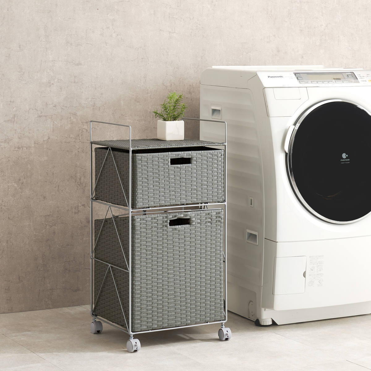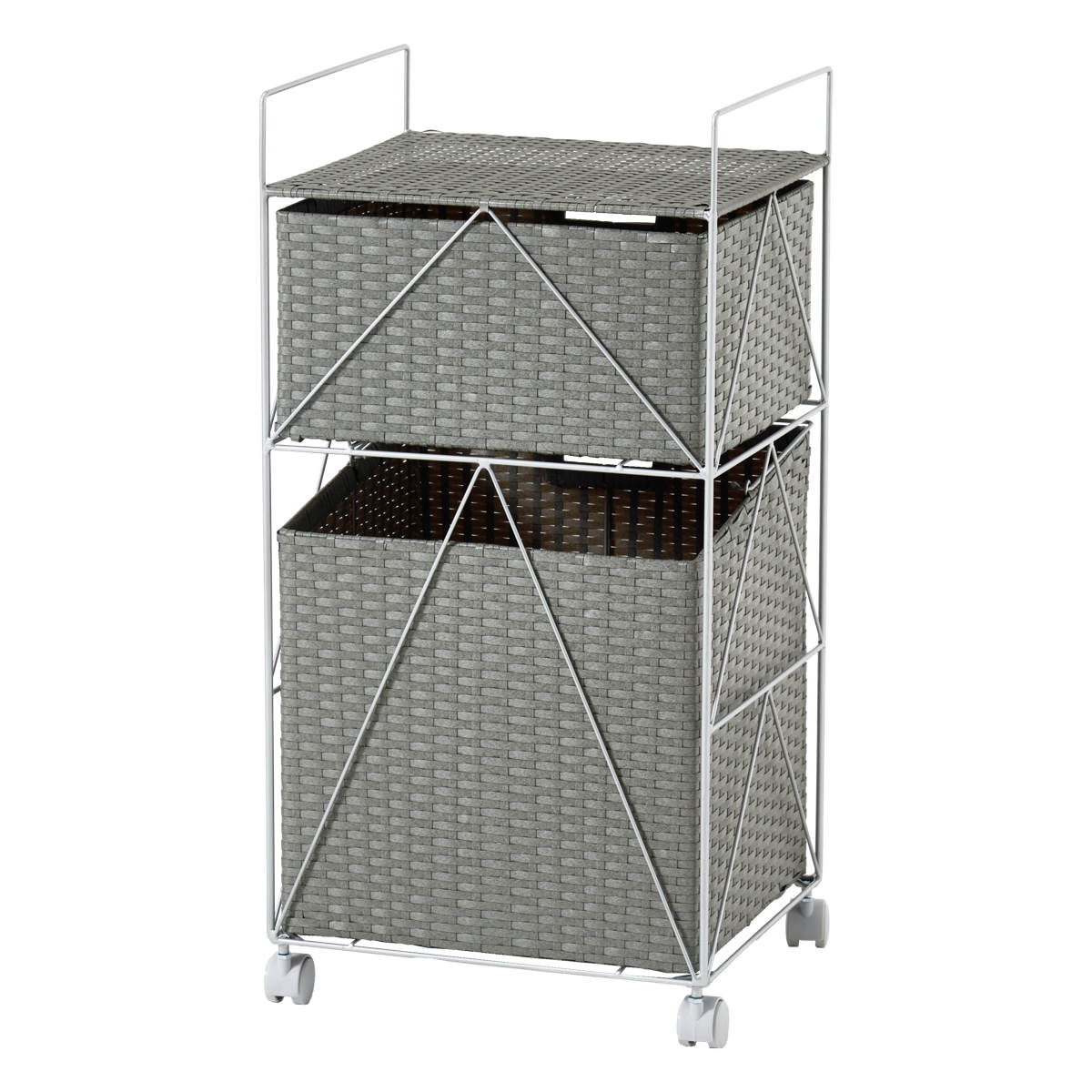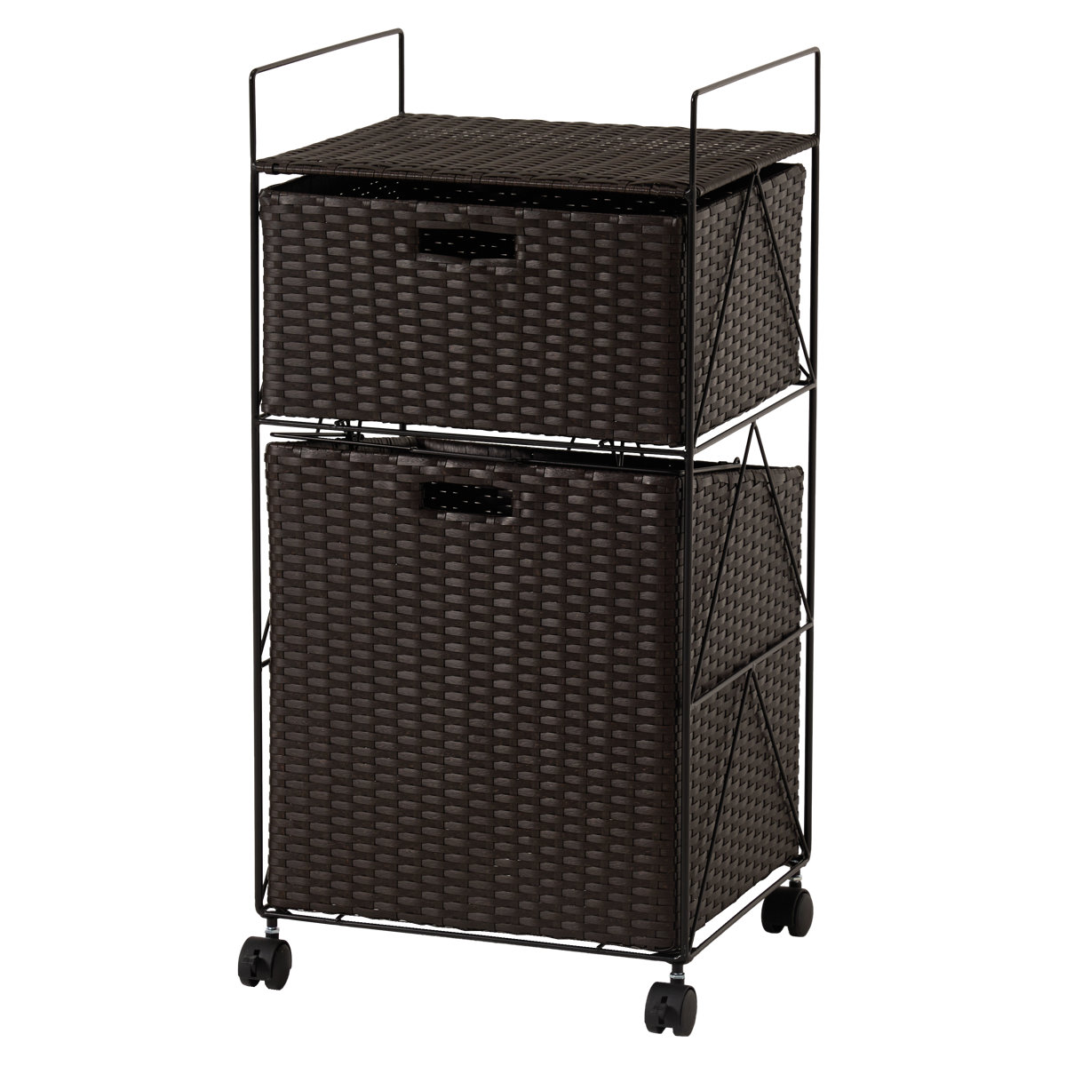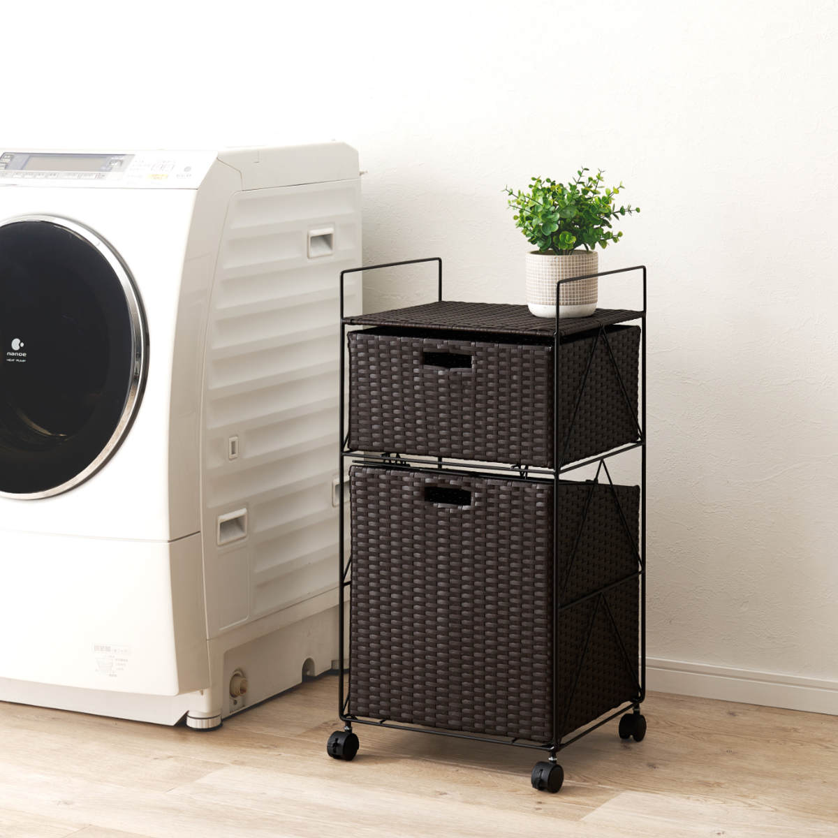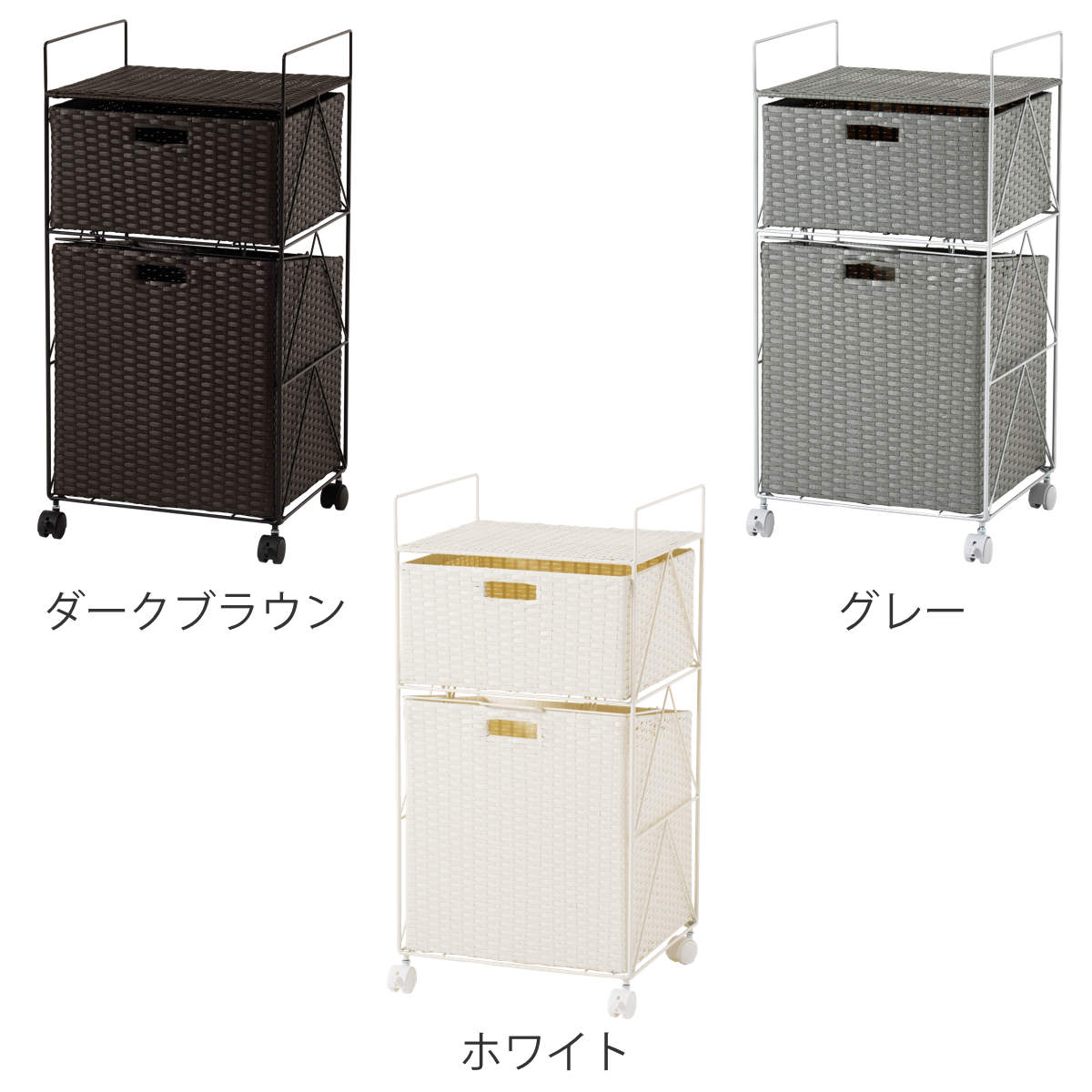 ランドリーワゴン 幅40cm 2段 引き出し キャスター付 完成品 ( ランドリー ワゴン 脱衣カゴ 洗濯カゴ 収納 チェスト バスケット 防水 ラタン調 ダークブラウン グレー ホワイト 家具 ) 【ダークブラウン】