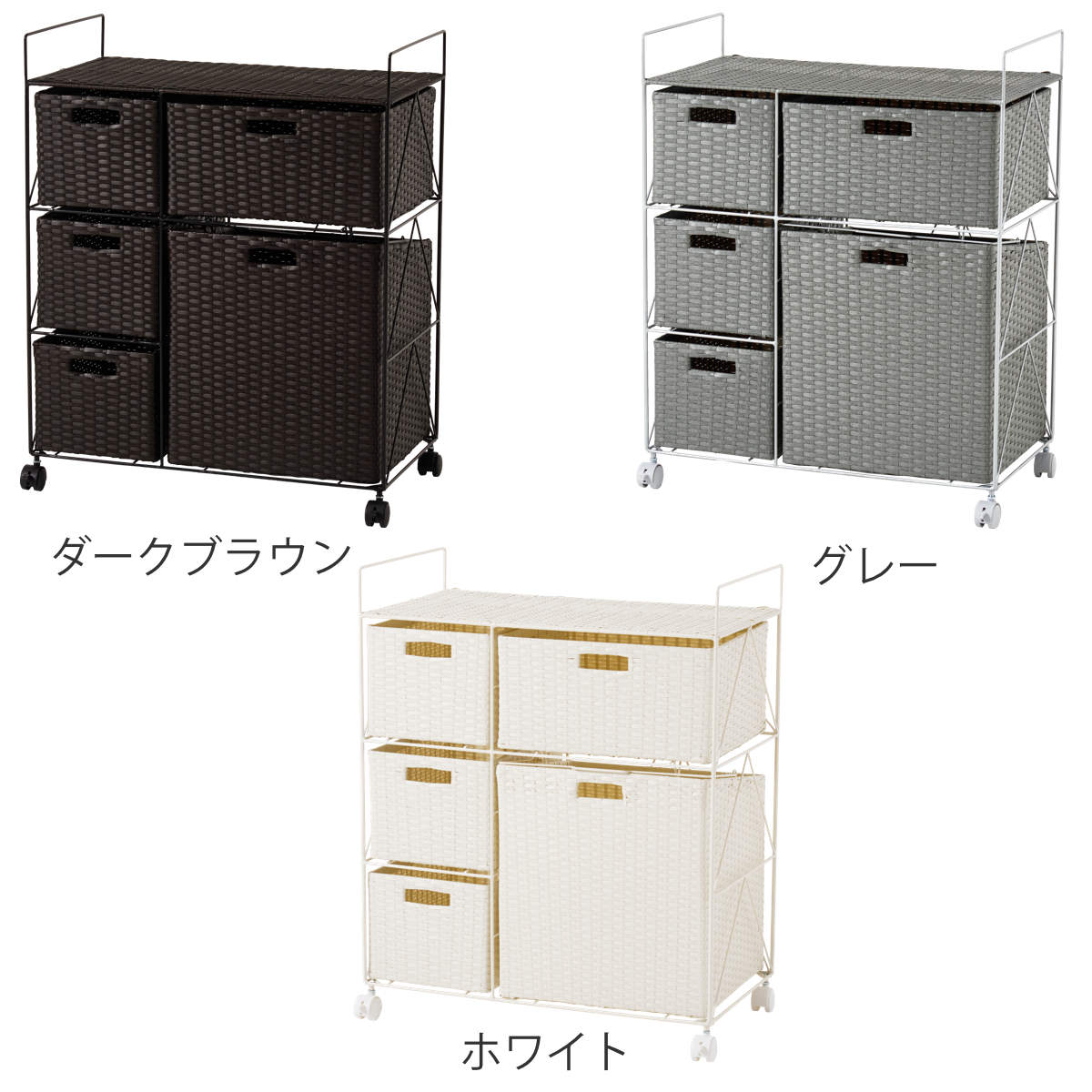 ランドリーワゴン 幅65cm 3段 引き出し キャスター付 完成品 ( ランドリー ワゴン 脱衣カゴ 洗濯カゴ 収納 チェスト バスケット 防水 ラタン調 ダークブラウン グレー ホワイト 家具 ) 【ホワイト】