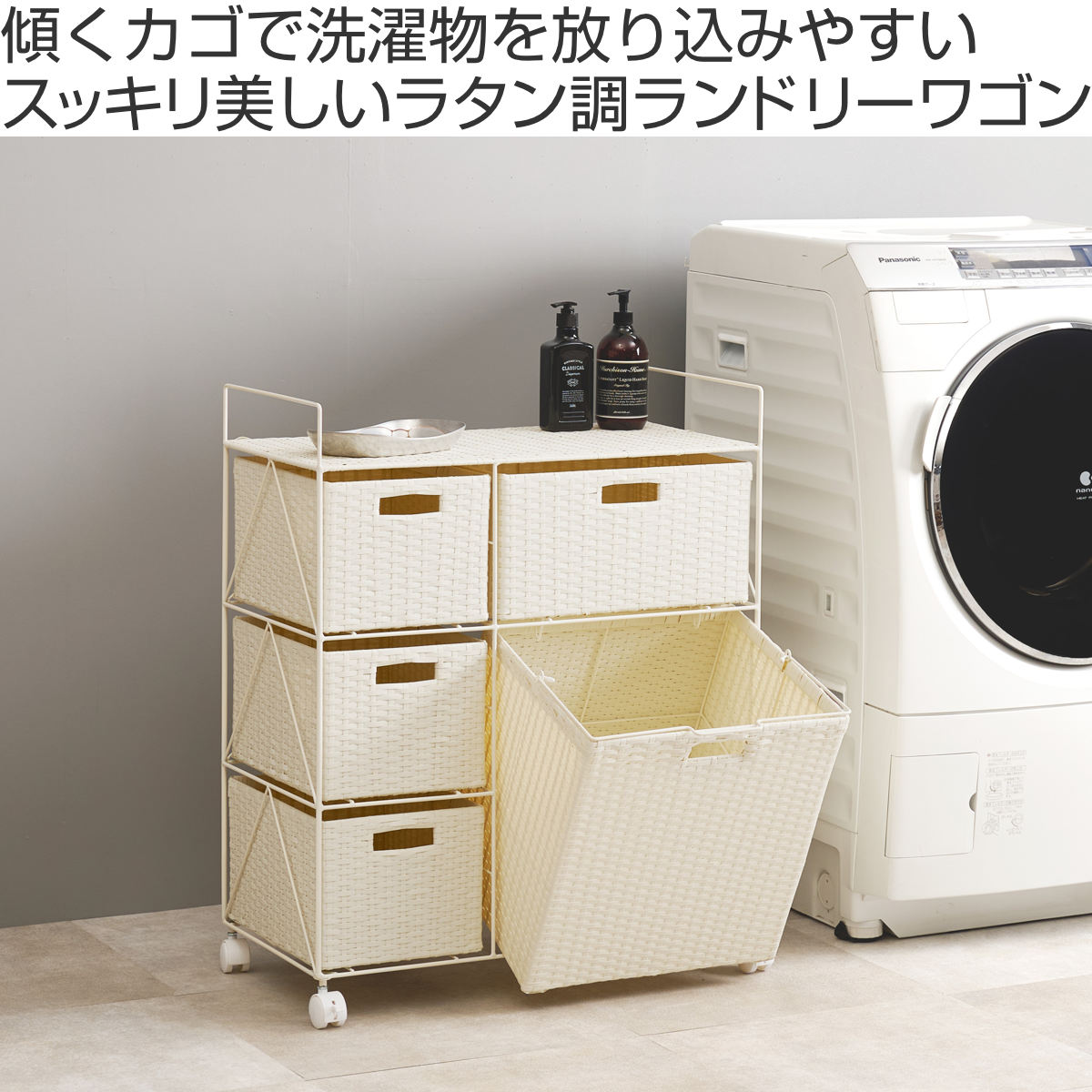 傾くカゴで洗濯物を放り込みやすいランドリーワゴン 幅65cm