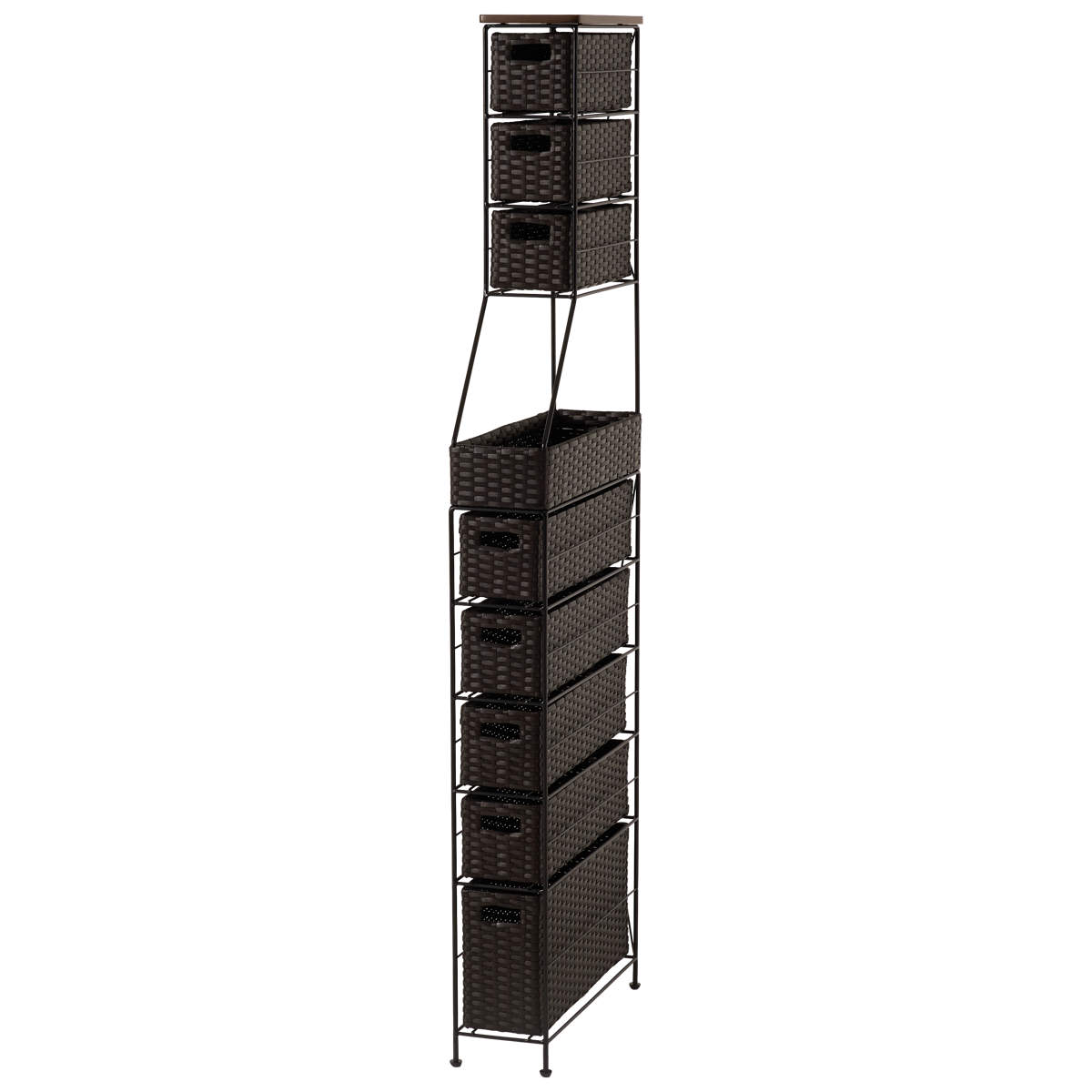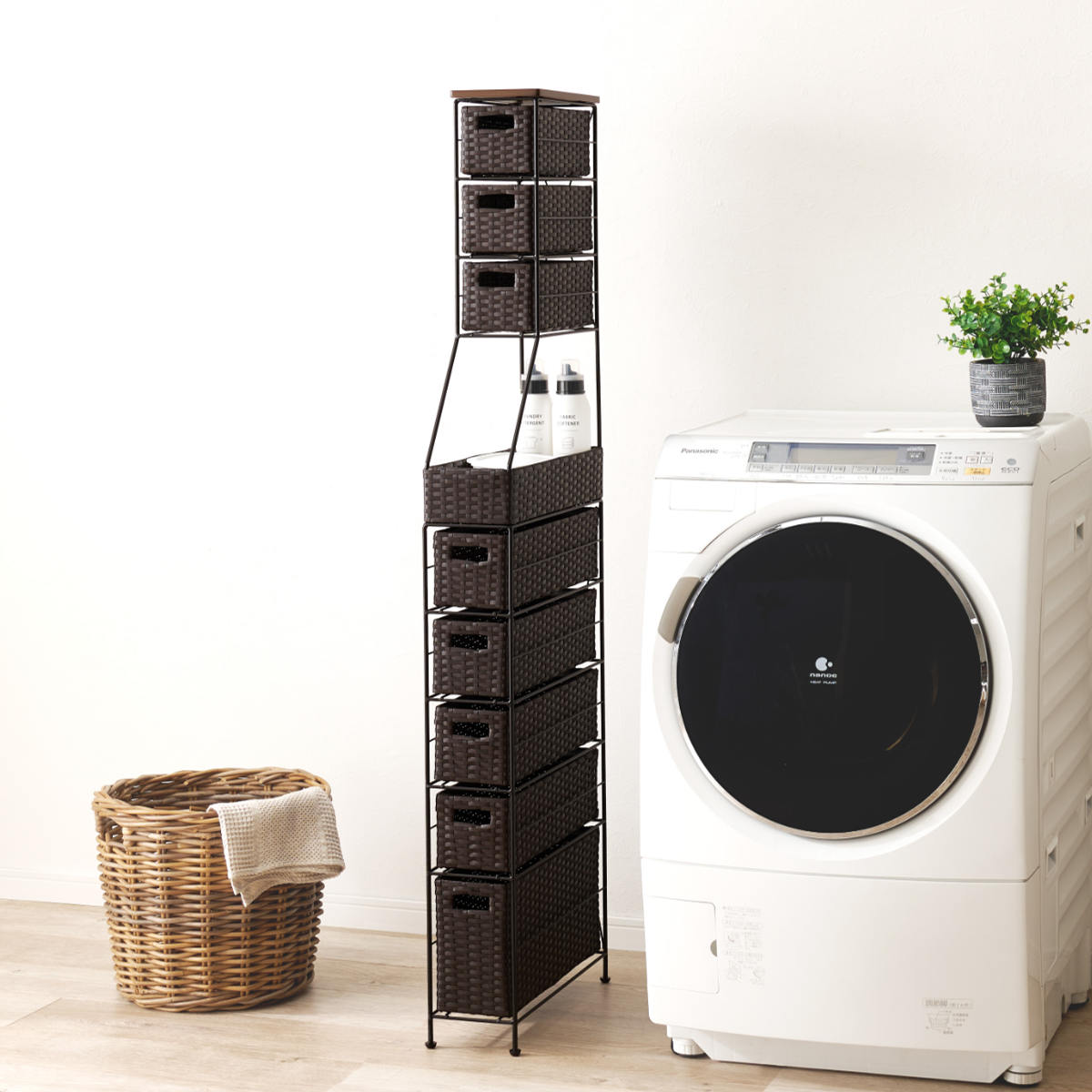 ランドリーチェスト 幅15cm 8段 スリム 引き出し 隙間収納 ( ランドリー チェスト すき間 収納 防水パン対応 アジャスター 引出し 防水 ラタン調 ダークブラウン グレー ホワイト 家具 ) 【ダークブラウン】