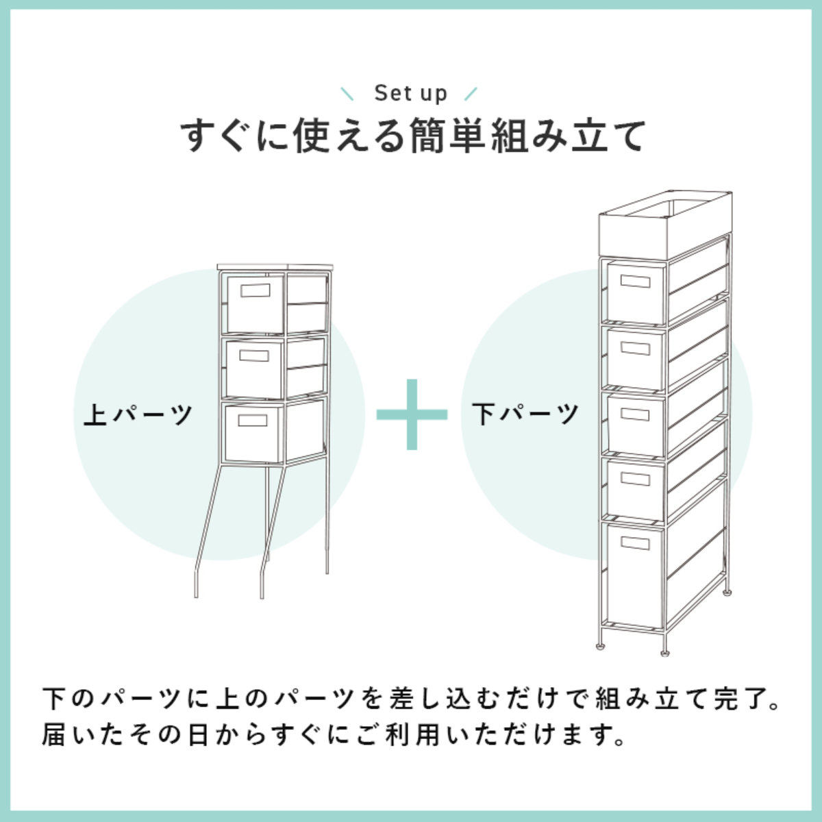 下のパーツに上のパーツを取り付けるだけで、すぐにお使いいただけます。ほとんど完成した状態で届くので、組み立て家具や工具を扱うのが苦手な方にもおすすめです。