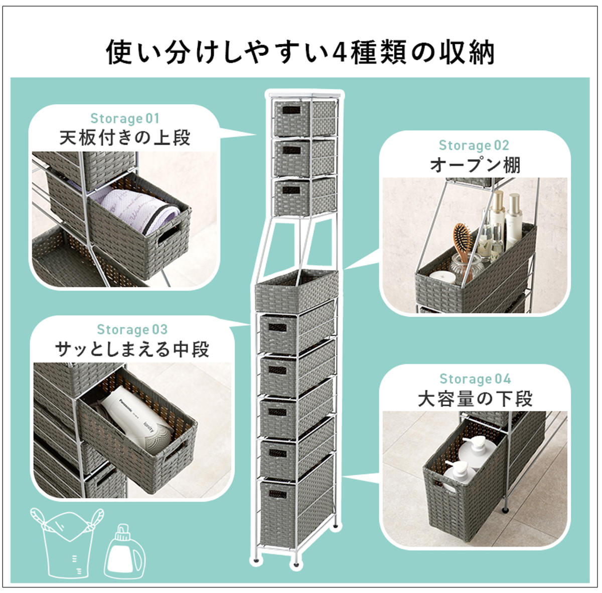 関連キーワード:取り外し ラタン風 インテリア 茶 白 ホワイトインテリア 灰色 幅15 奥行45 高さ155 cm センチ 洗面所 脱衣所 リビング タオル おしゃれ お洒落 オシャレ かわいい 可愛い カワイイ 便利 キッチン ストッカー 消耗品 新生活 八段 8杯 引出