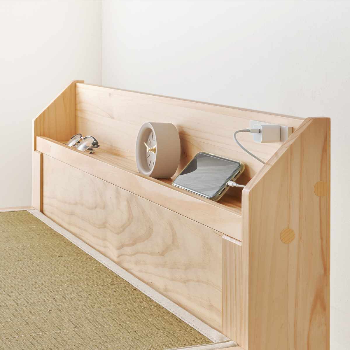 畳ベッド シングル 宮棚 2口コンセント付 天然い草 ( ベッド 畳 棚付 たたみ い草 コンセント付 和モダン ライトブラウン ナチュラル 貴船 鞍馬 天然木 木製 マット ) 【ライトブラウン×貴船】
