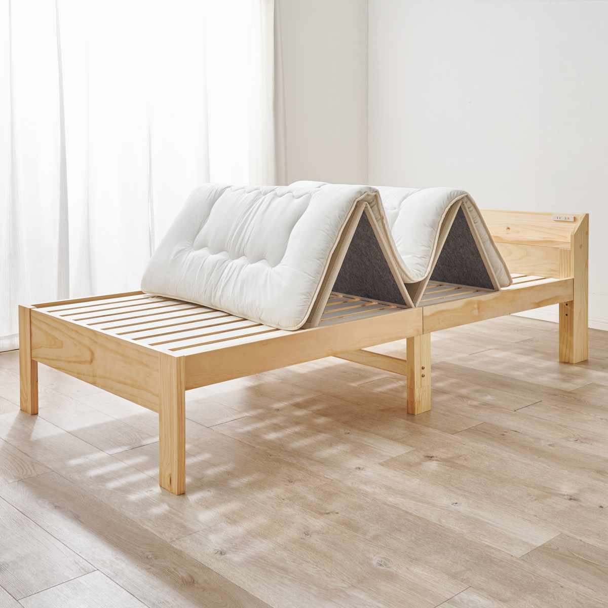 マットレスを折り曲げれば布団を干しながらすのこの乾燥もできるので、年中寝具を清潔に保てます。