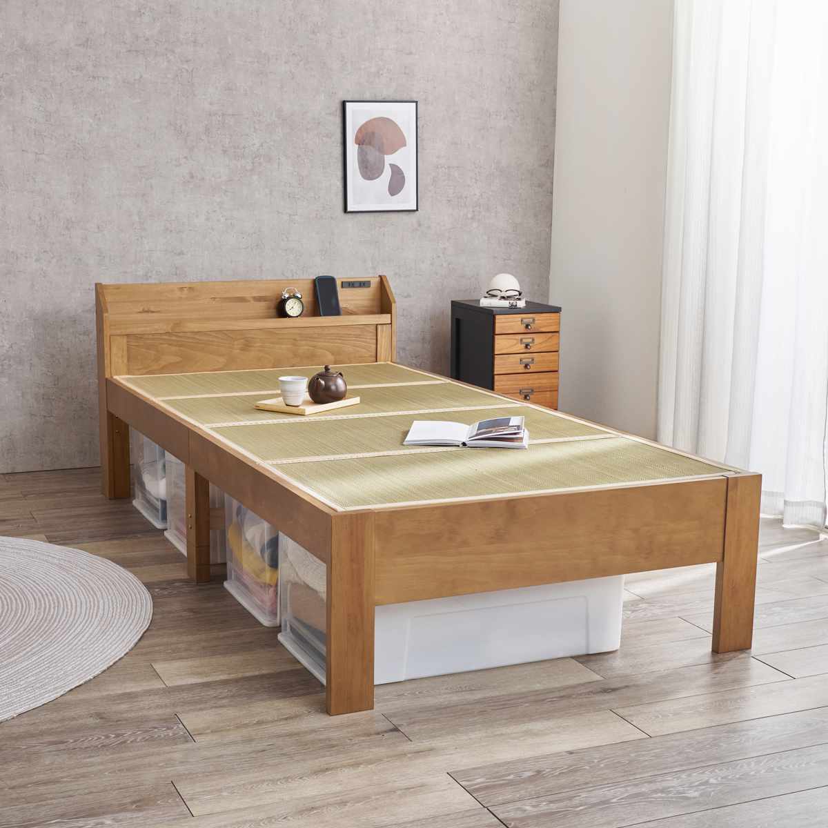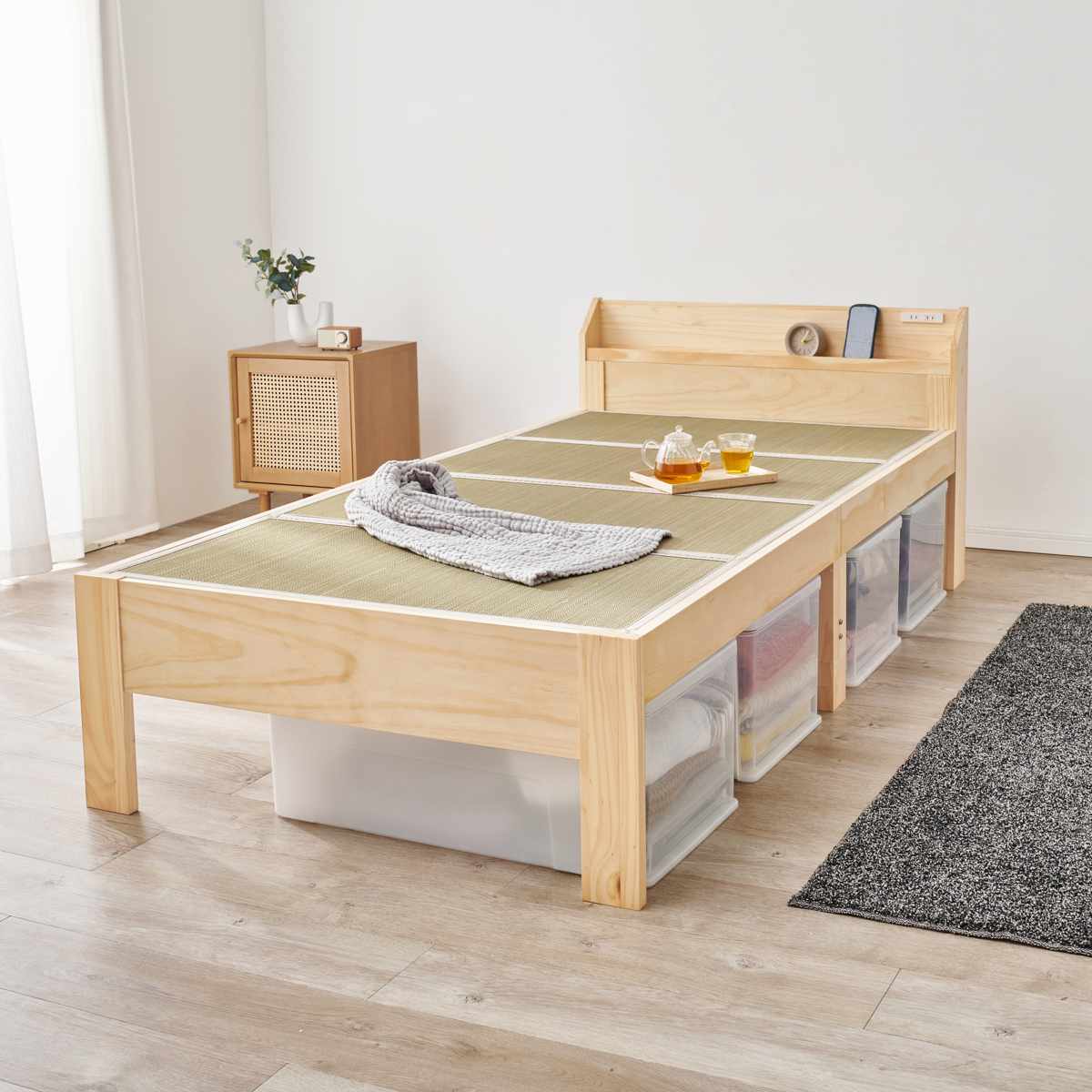 畳ベッド シングル 宮棚 2口コンセント付 天然い草 ( ベッド 畳 棚付 たたみ い草 コンセント付 和モダン ライトブラウン ナチュラル 貴船 鞍馬 天然木 木製 マット ) 【ライトブラウン×貴船】のレビュー