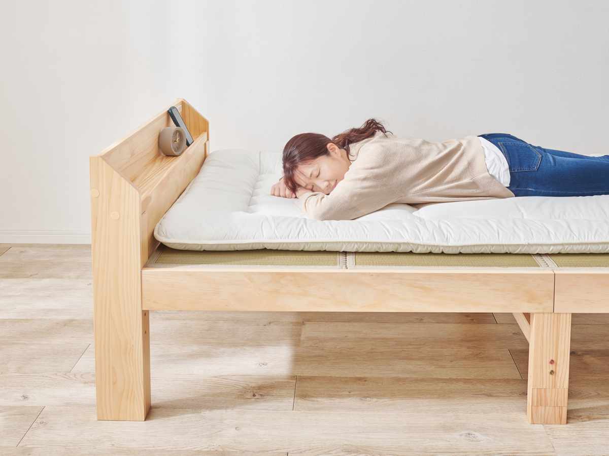 畳は1人でも手軽に持ち運びができ、ベッド、単体どちらでも便利に使えます。