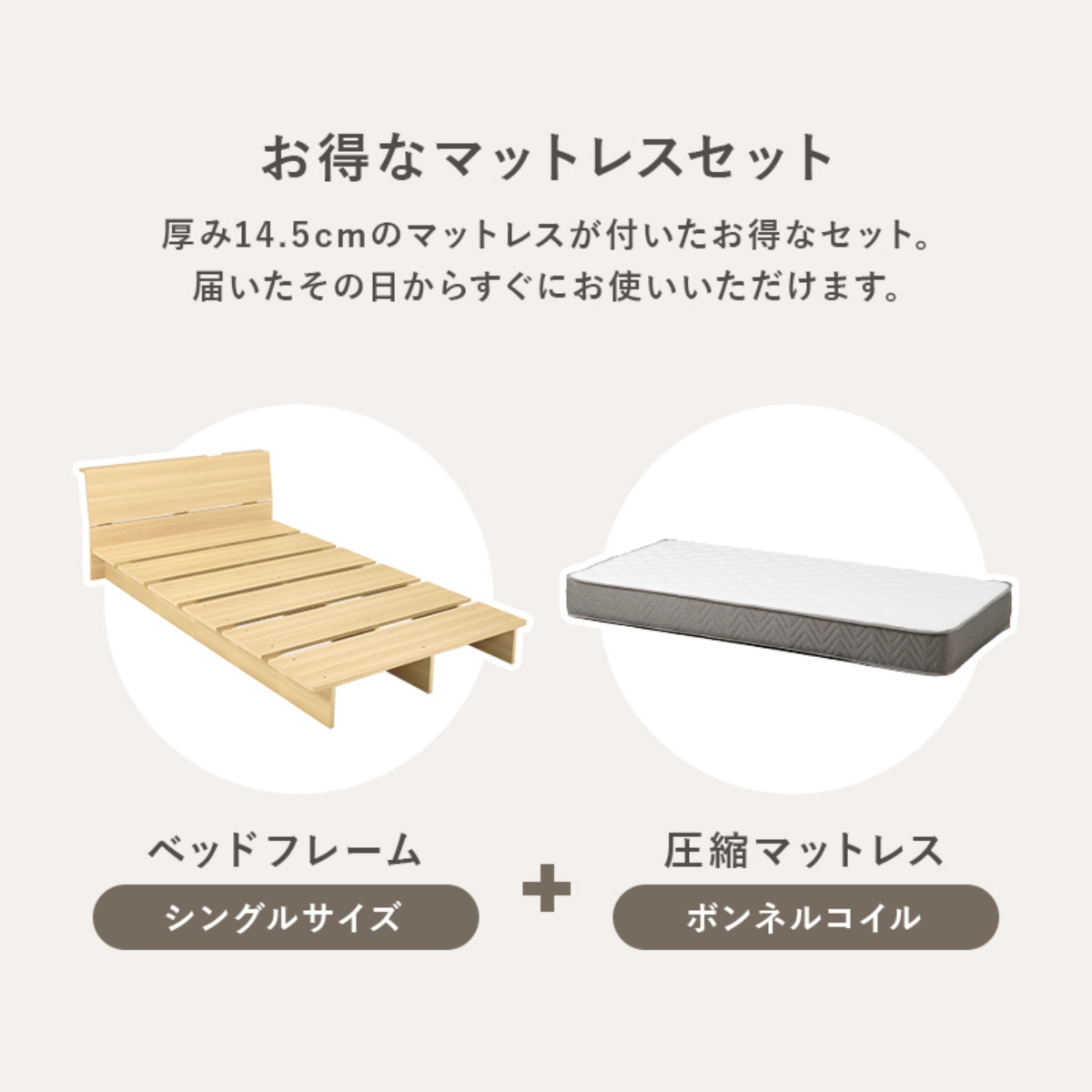 ![]() ベッドフレーム | ![]() マットレス付き ボンネルコイル 【▲このページの商品】 |