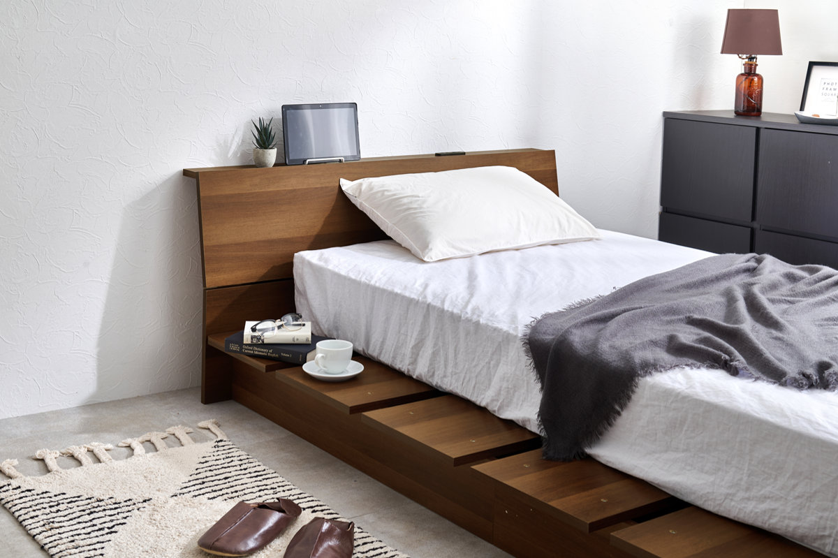 お部屋が広く見えるロースタイルのステージベッド シングル