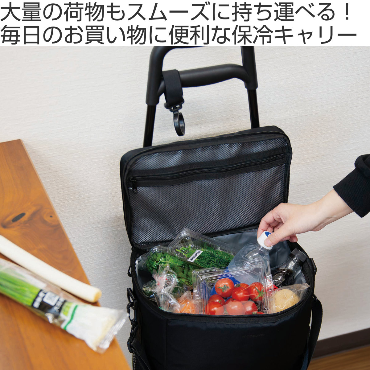 お買い物の便利機能が満載の保冷キャリーカート