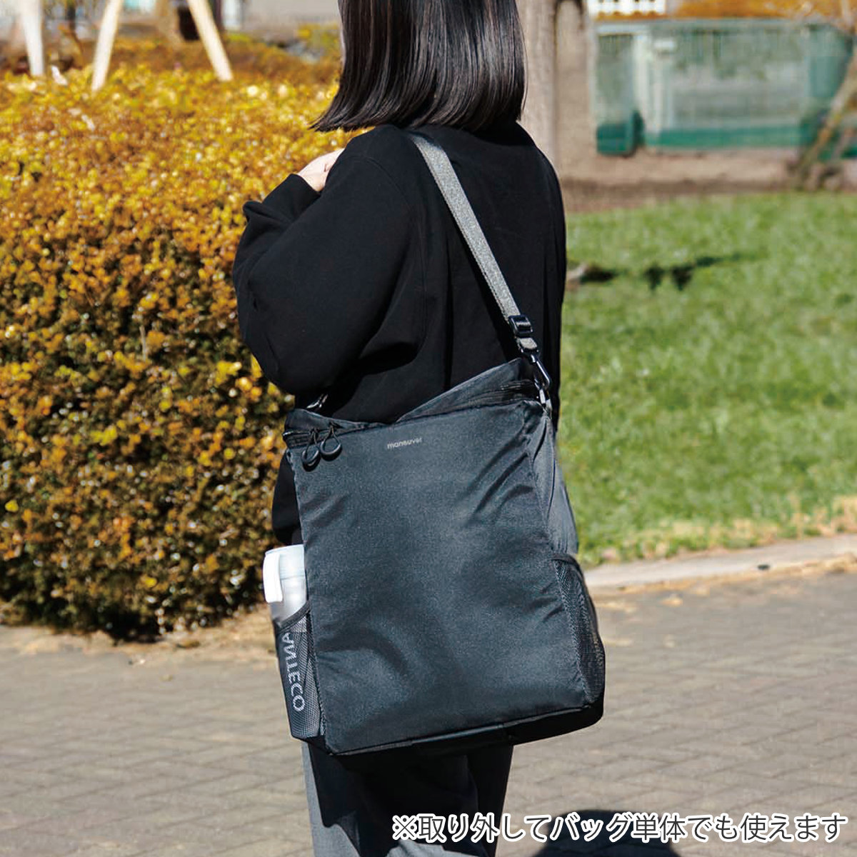 カートから取り外してバッグ単体で使うこともできます。ショルダーひもが付いているので、気軽な肩掛けスタイルが可能。お買い物やお出かけなど、シーンに合った使い方を楽しめます。