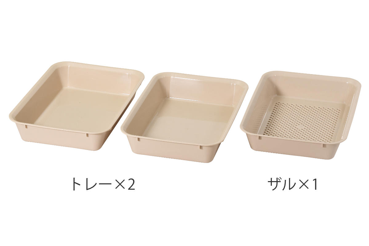 | サイズ | ザル:幅25×奥行17.5×高さ4.5cm トレー:幅25×奥行17.5×高さ5cm |
