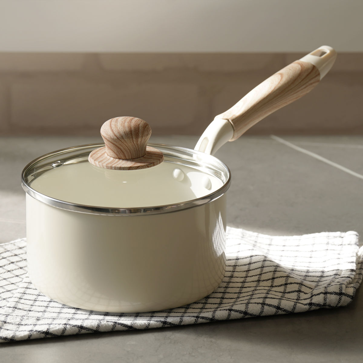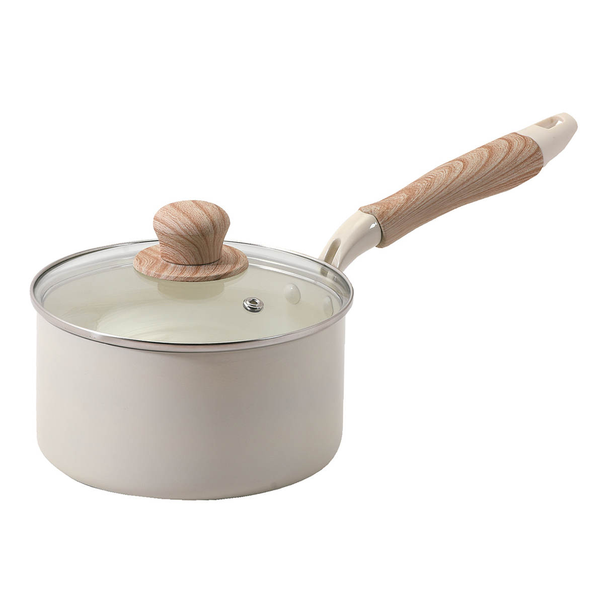片手鍋 16cm IH対応 ガラス蓋付き セラミール ( ガス火対応 オール熱源対応 片手なべ 鍋 セラミック加工 軽い 16センチ アルミ製 セラミック 木目調ハンドル こびりつきにくい 軽量 耐久性 おしゃれ )