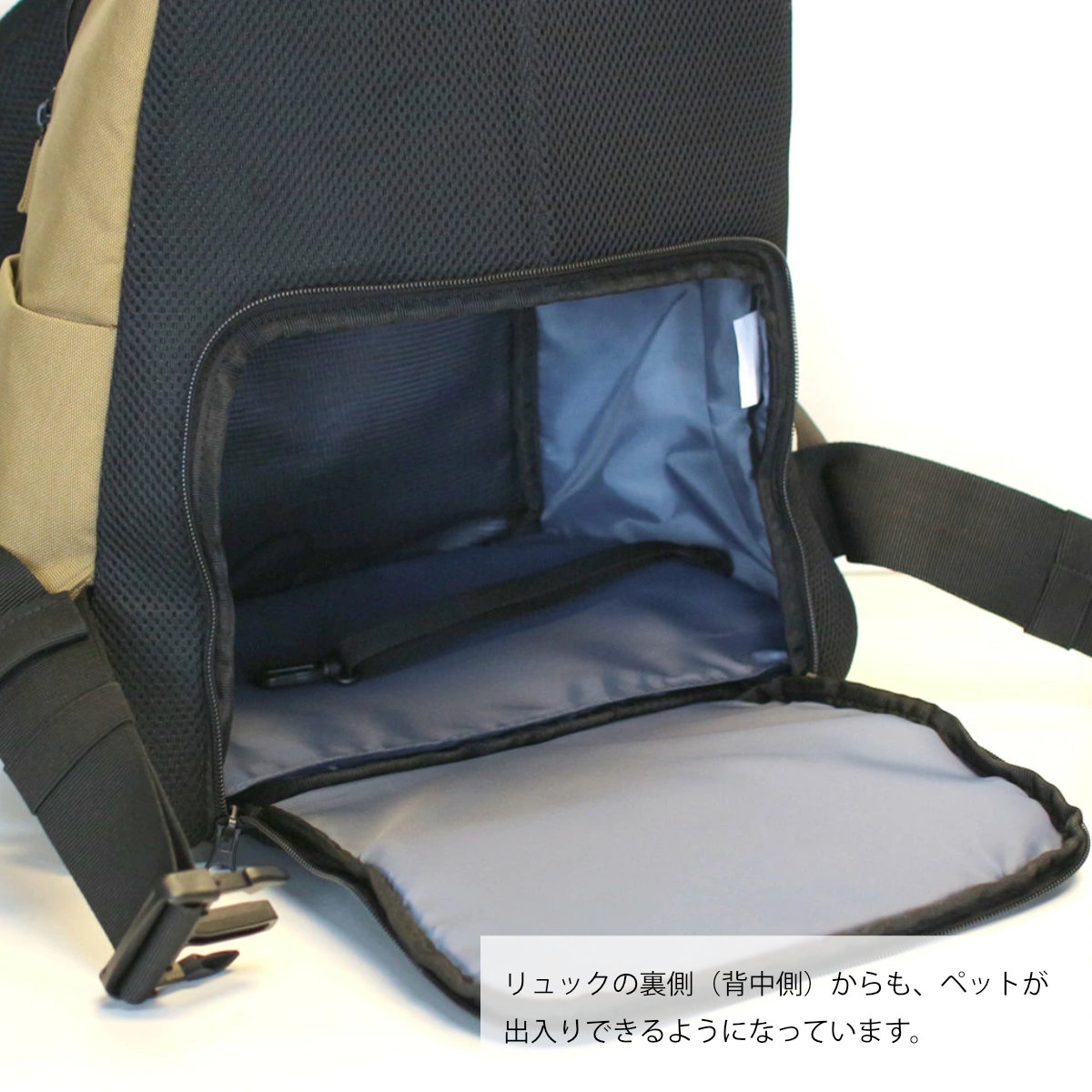 背面にファスナーがあり、ペットが出入りできます。