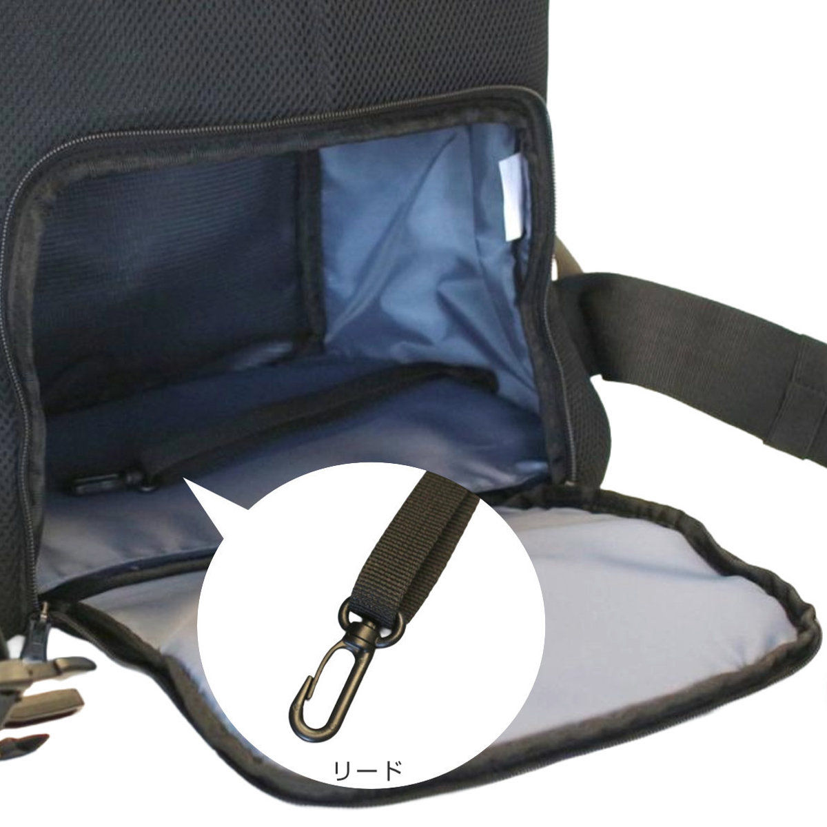 リュック内部にペットの飛び出しを防ぐリードを付属しています。