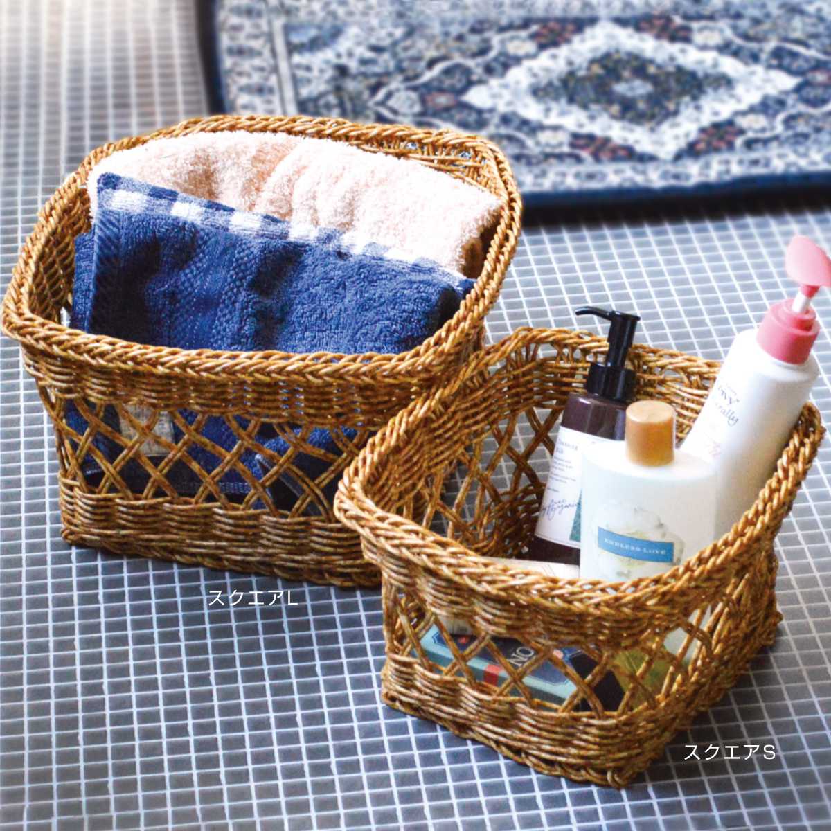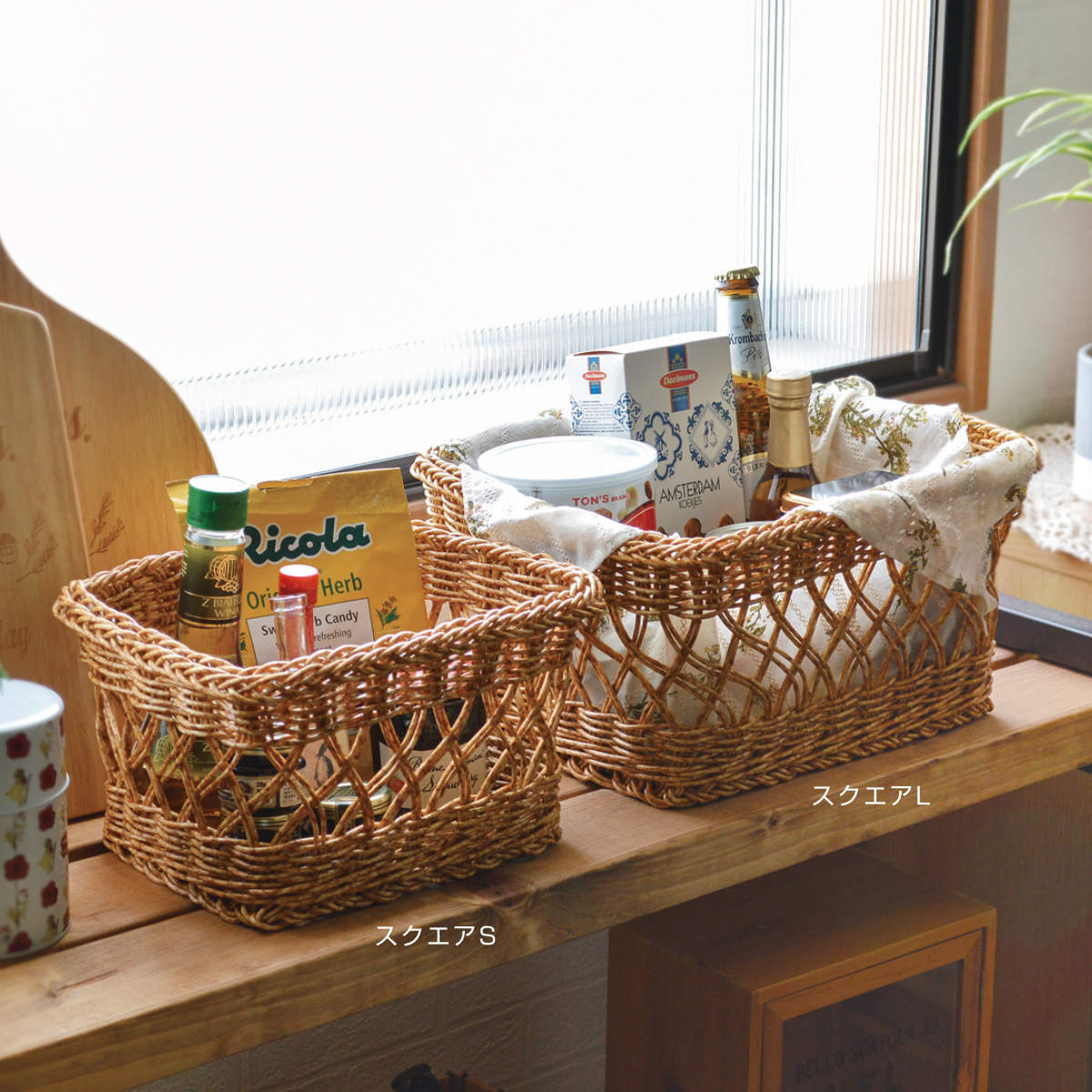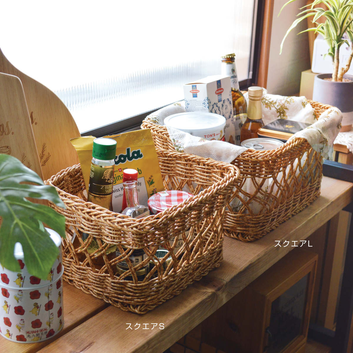 ラタンのような風合いのバスケット スクエアL
