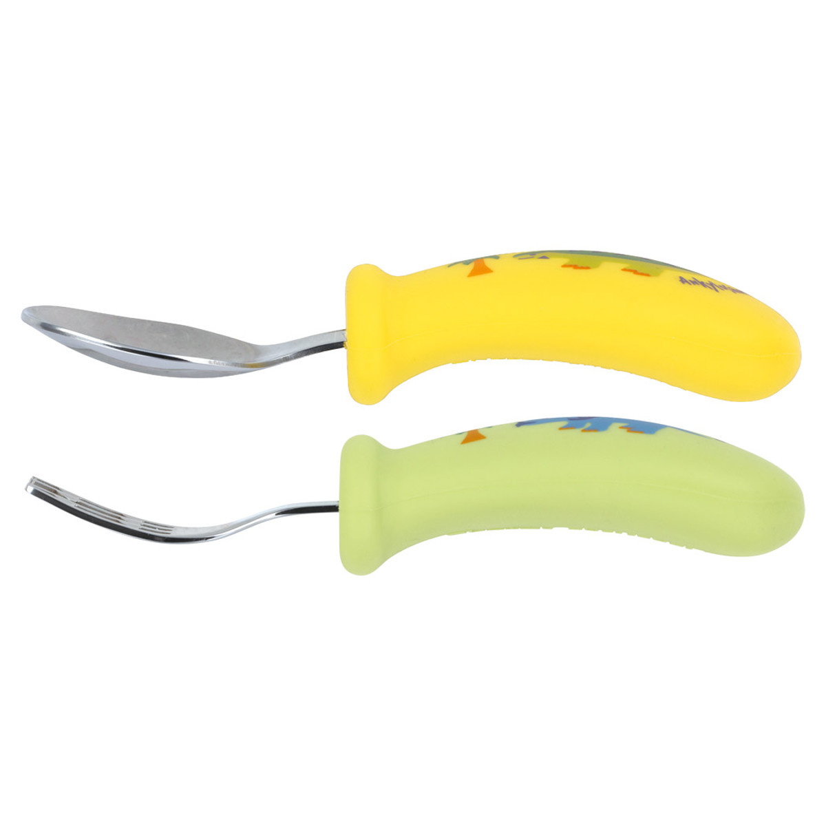 スプーン フォーク セット ディノサウルス 握りやすい シリコン ( スプーン&フォーク ステンレス 食洗機対応 子供 ベビー 赤ちゃん カトラリー 持ちやすい 食事 ご飯 練習 麺 凸凹形状 男の子 )