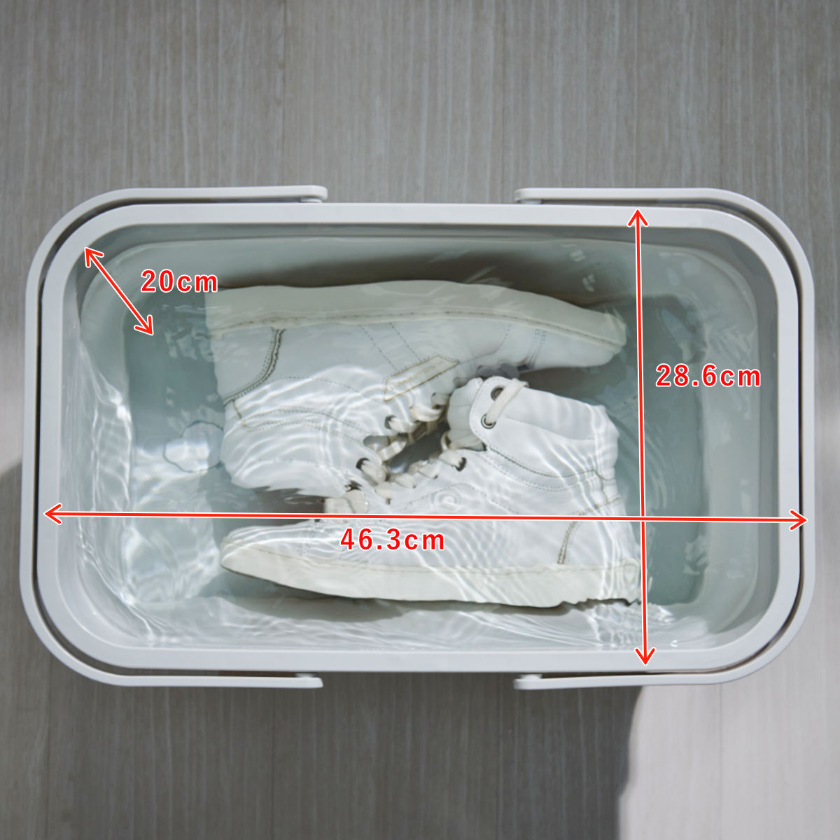 フェイスタオル6枚が十分につけられる大容量サイズです。大人の靴も余裕で入るので、洗う時にラクに作業できます。