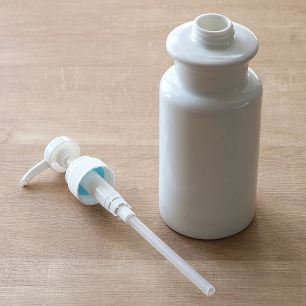 清潔感のある真っ白な陶器のシャンプーポンプです。陶器製の重厚感とスタイリッシュなデザインが、ホテルのような上質な空間を演出してくれます。一度買ったら替える機会の少ないアイテムだからこそ、少し贅沢をして上質なものを選べば、毎日の暮らしにちょっとした豊かさがプラスされます。