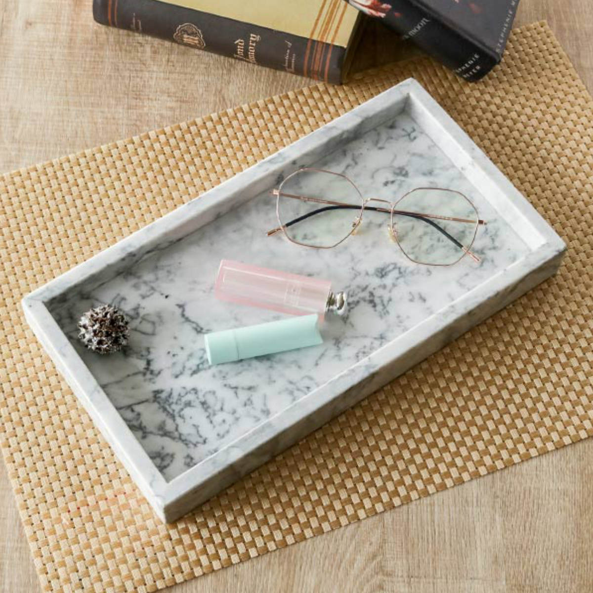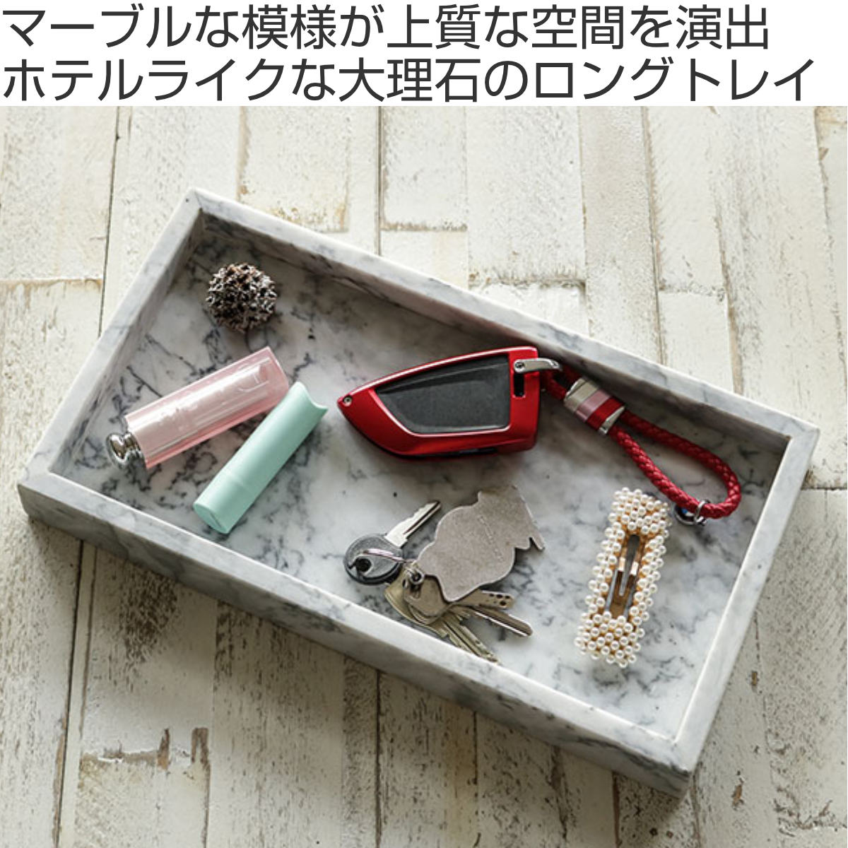 アクセサリートレー ストーンマーブル ロングトレイ 大理石 ( トレー マルチトレイ 小物入れ アクセサリー インテリア おしゃれ 高級感 天然石 時計 小物 めがね コスメ 鍵 雑貨 収納 玄関 洗面 )