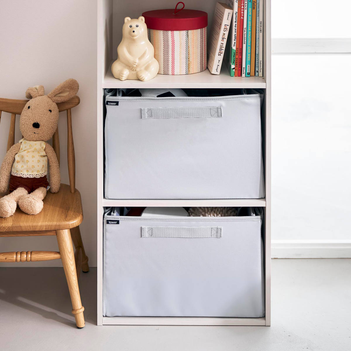 カラーボックスにピッタリ収まるサイズです。片付けた後はカラーボックスに収納しておくとお部屋を広く使えてすっきりします。
