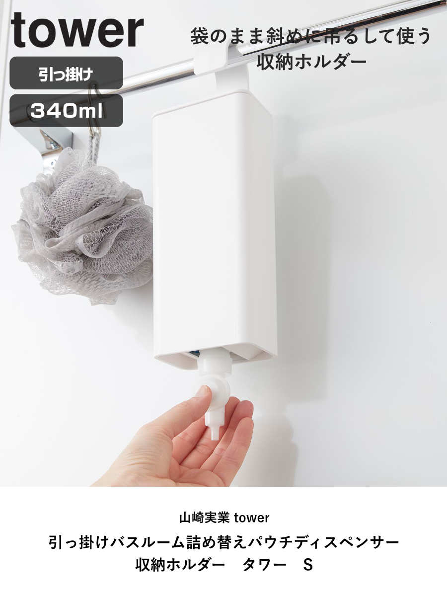 山崎実業 tower 引っ掛けバスルーム詰め替えパウチディスペンサー収納ホルダー タワー S ( 4903208101493 タワーシリーズ 詰め替えパウチディスペンサー 収納ホルダー 引っ掛け バスルーム 詰め替え ディスペンサー 収納 ) 【ホワイト】