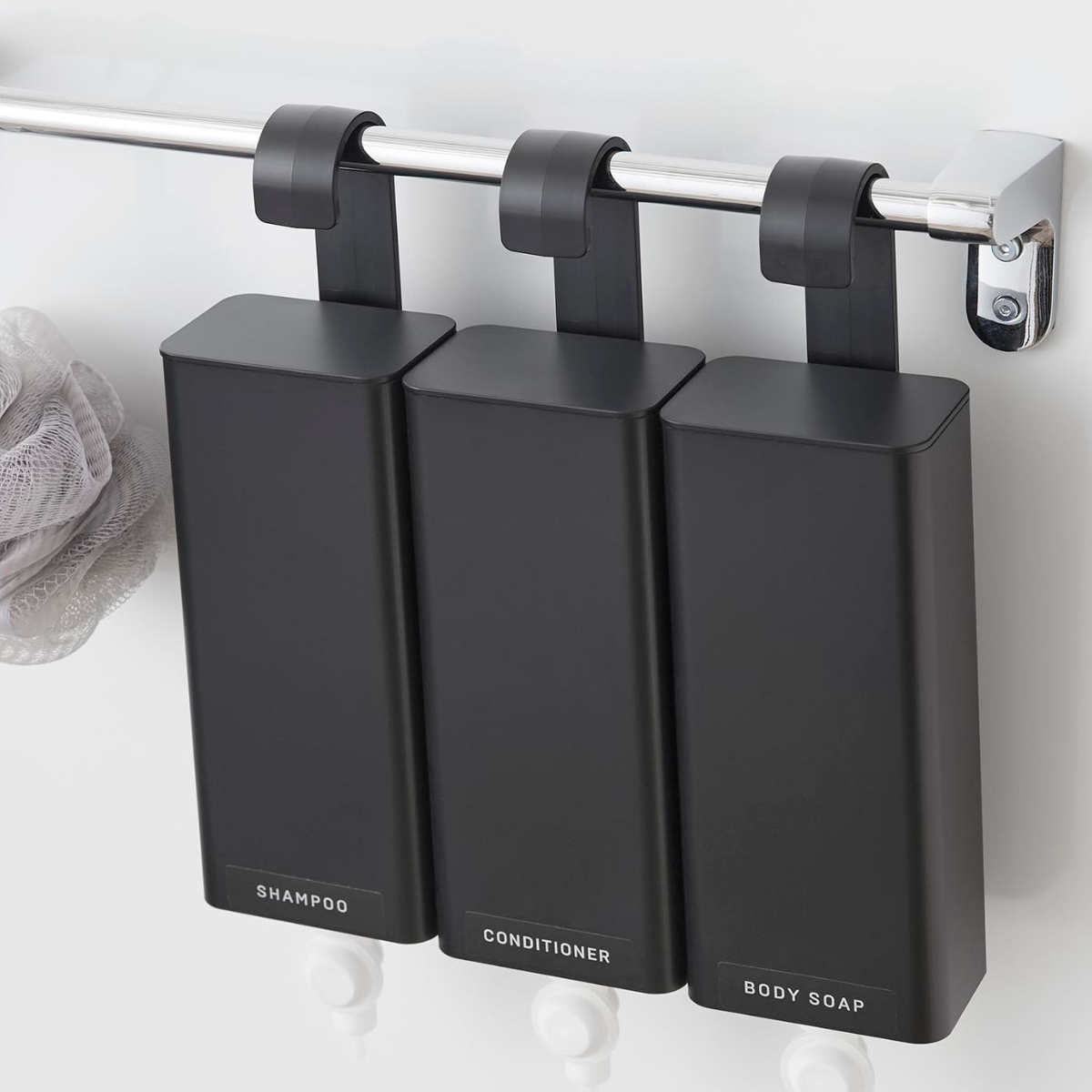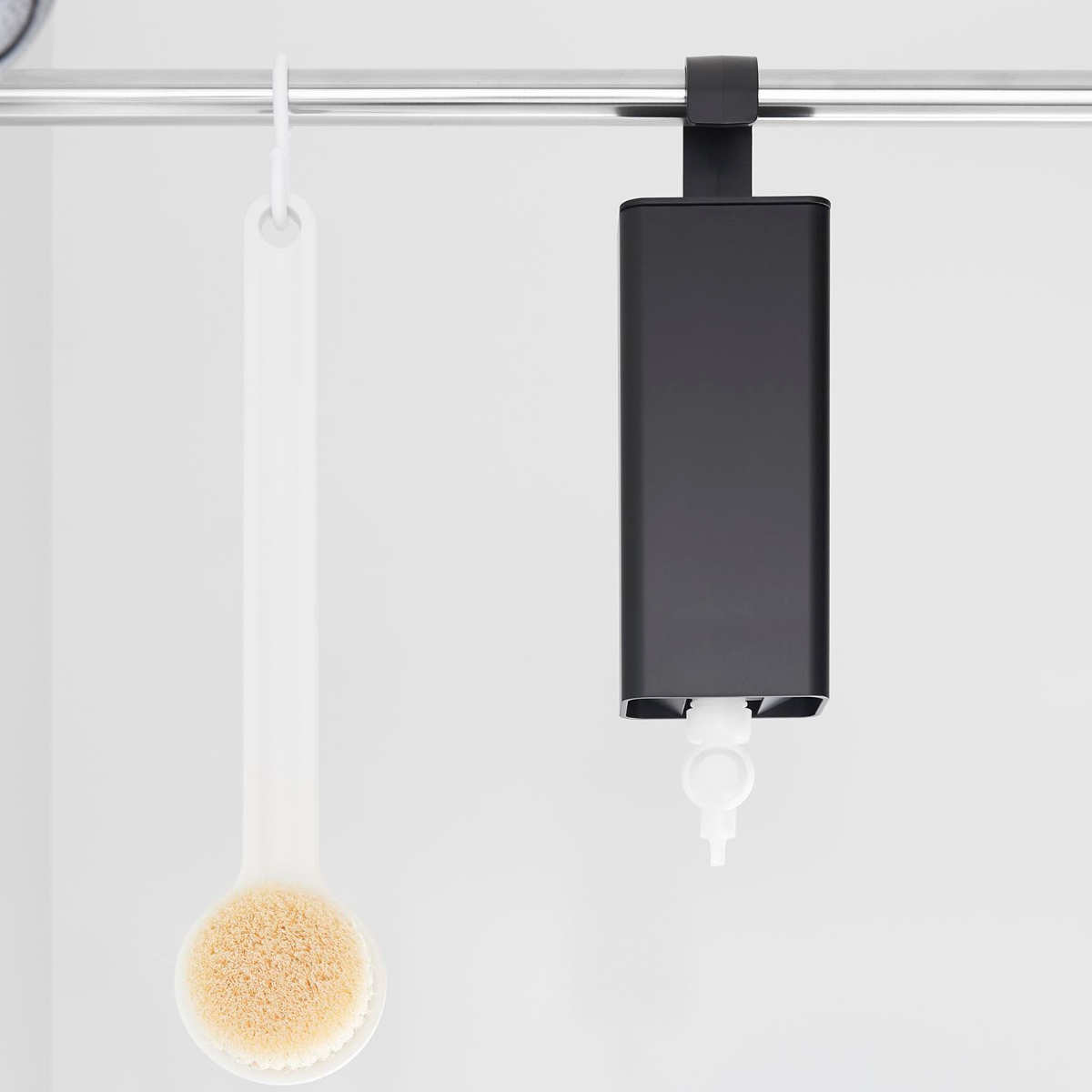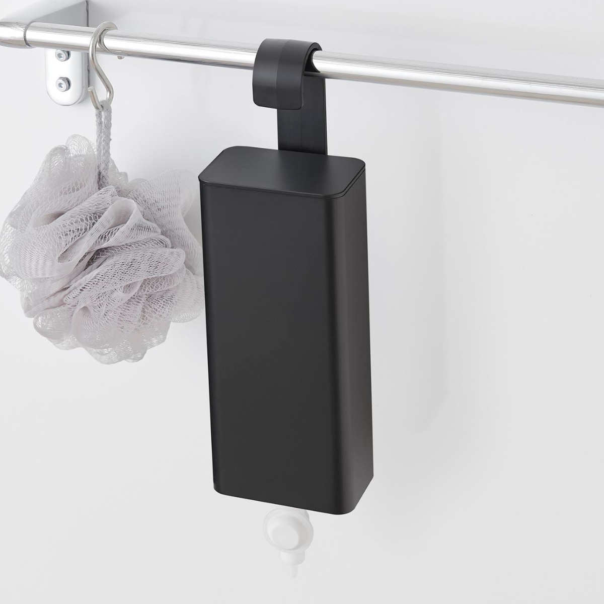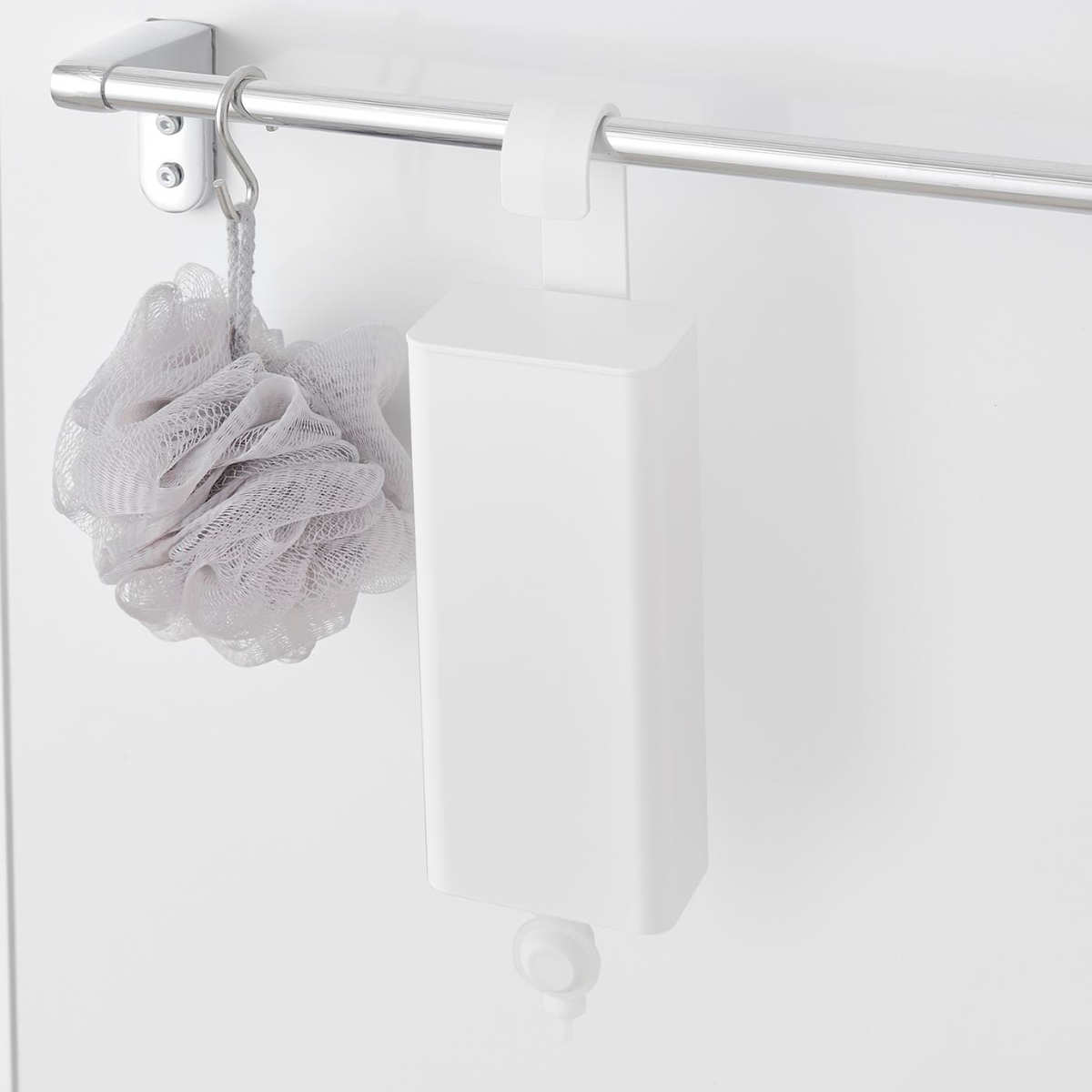 フックで浴室乾燥バーや洗面所のタオルバーに引っ掛けて設置することができます。浮かせて収納することでボトル底がぬめらず衛生的です。