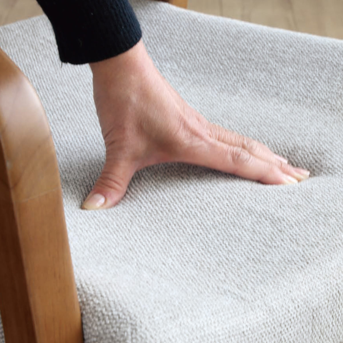 座面に高密度ウレタンを採用。適度な弾力性で、長時間座っていても疲れを感じにくい構造です。食事や読書、趣味の時間にも心地よく使えます。