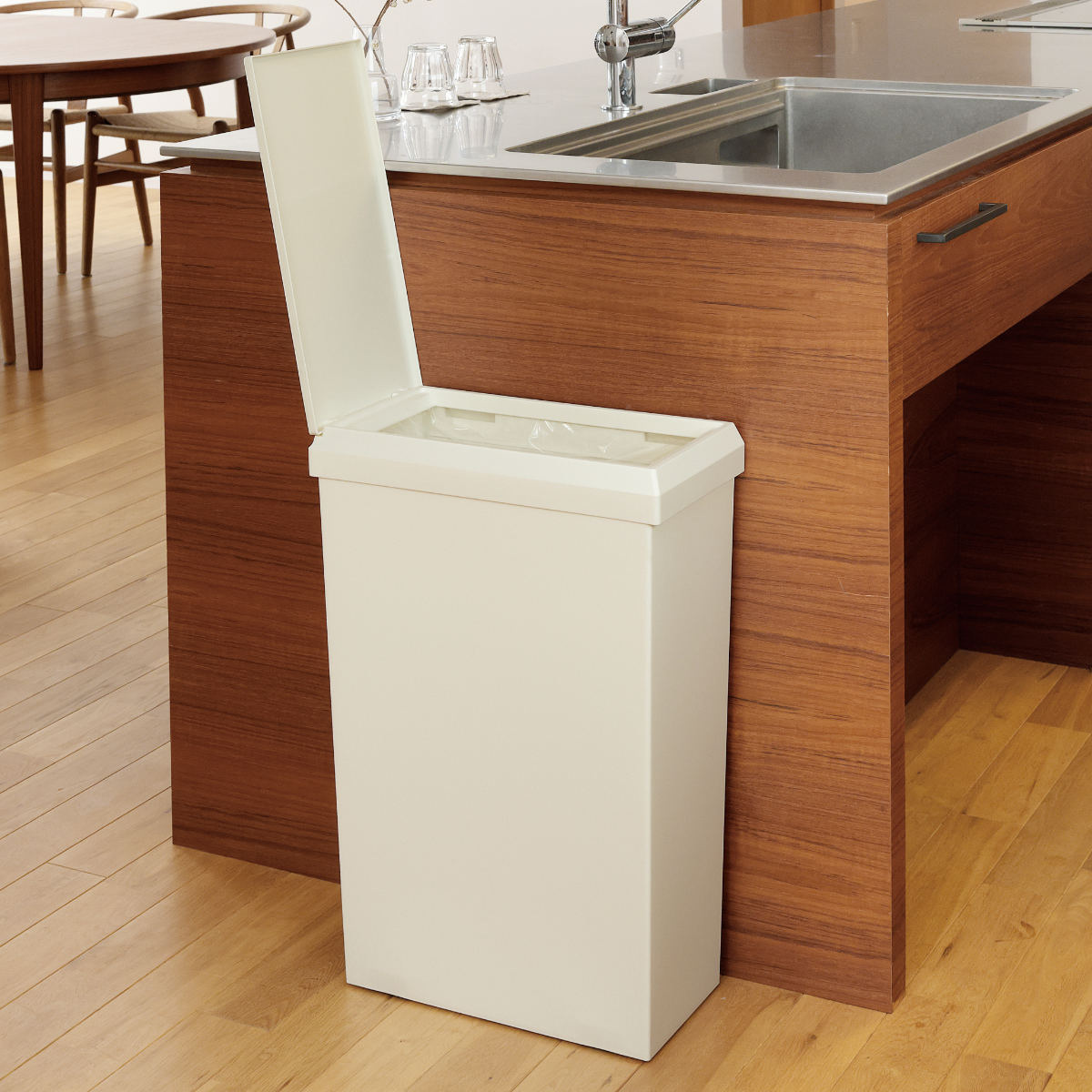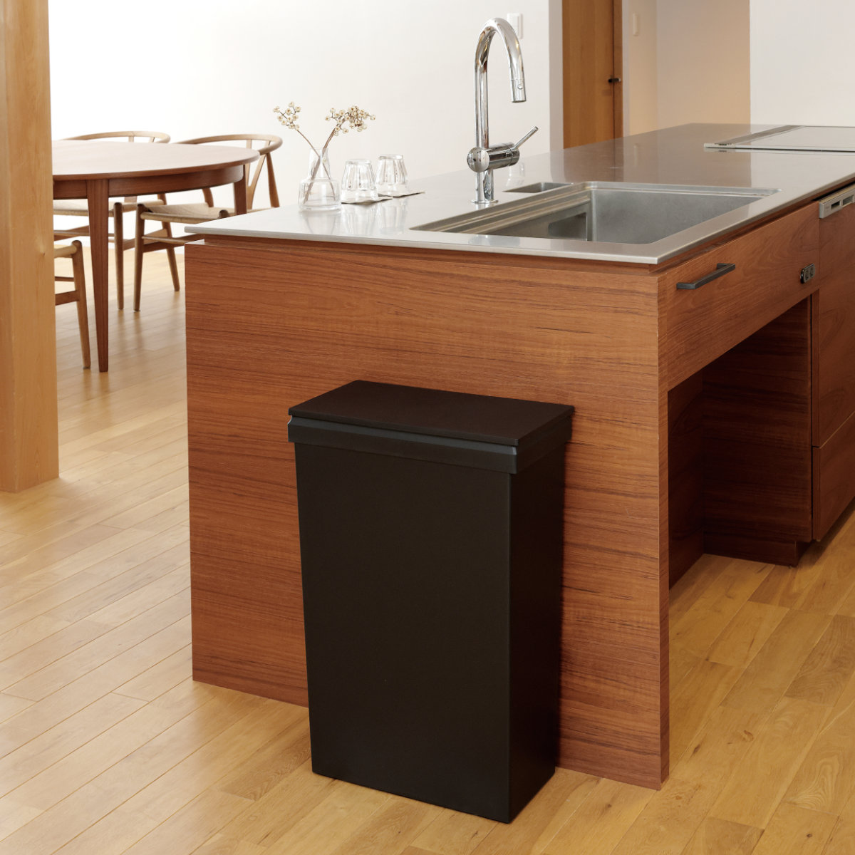 清潔感のあるシンプルなデザインがゴミ箱と主張し過ぎず、お部屋のインテリアに溶け込みます。可燃ゴミと不燃ゴミで分別するのに並べて置いてもスッキリとした印象です。