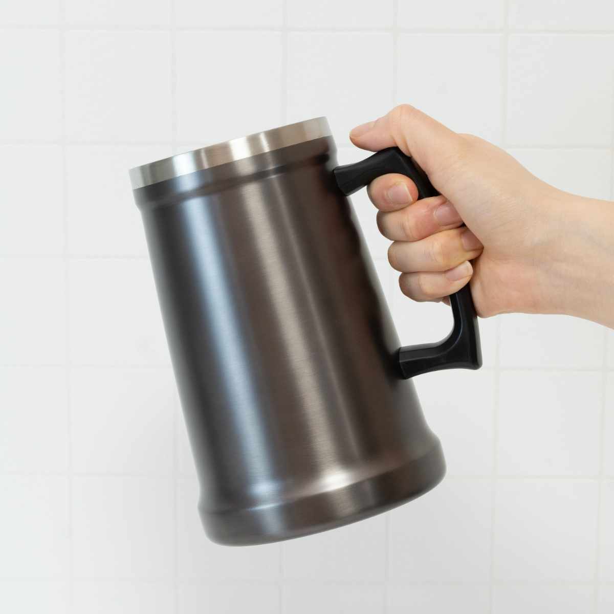 1Lの飲み物が入る大きなタンブラーです。冷たさと温かさを逃がしにくい真空断熱構造なので飲み頃温度を長時間キープします。外側に熱を通さないので、おいしい温度をキープ・結露しにくい・外面が熱くならないタンブラーです。