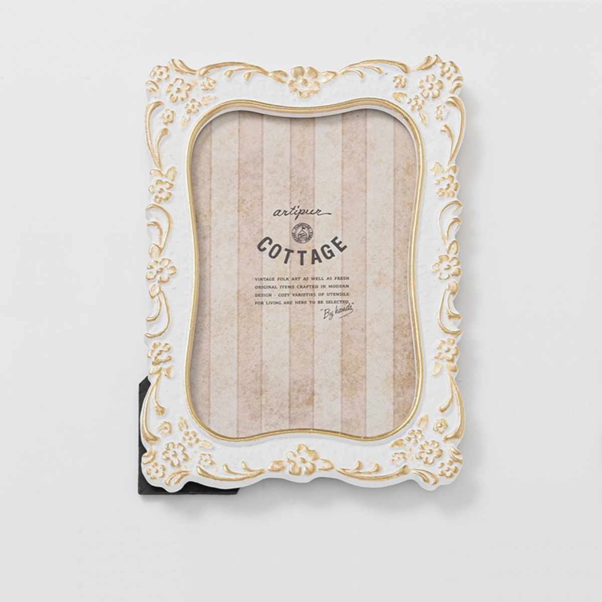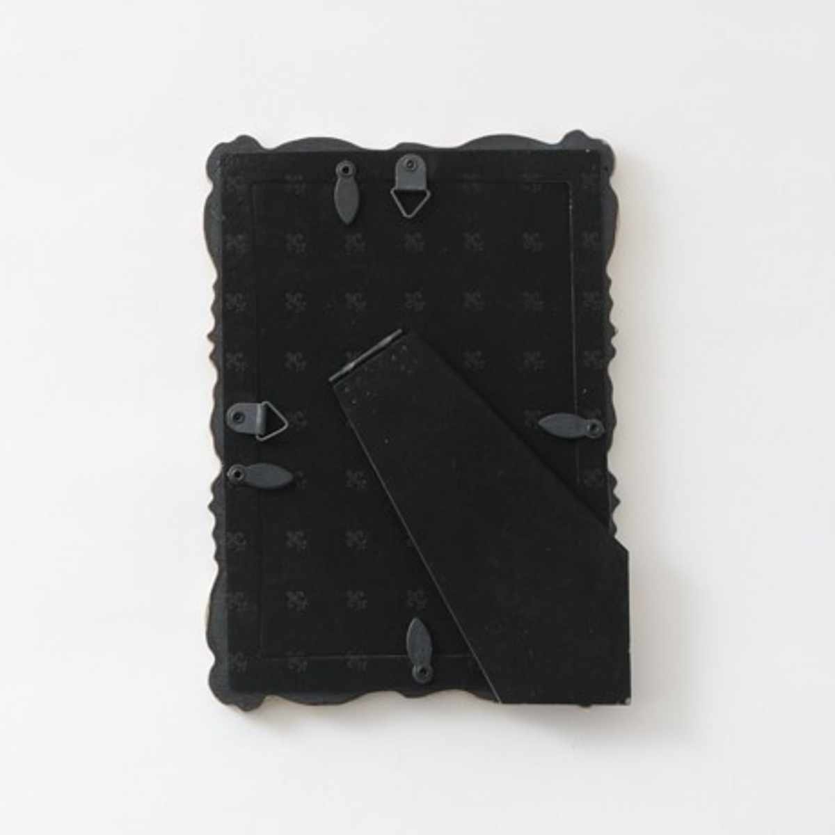 フォトスタンドとして立てて置くだけでなく、壁掛け用フックが付いているので壁にも取り付けられます。