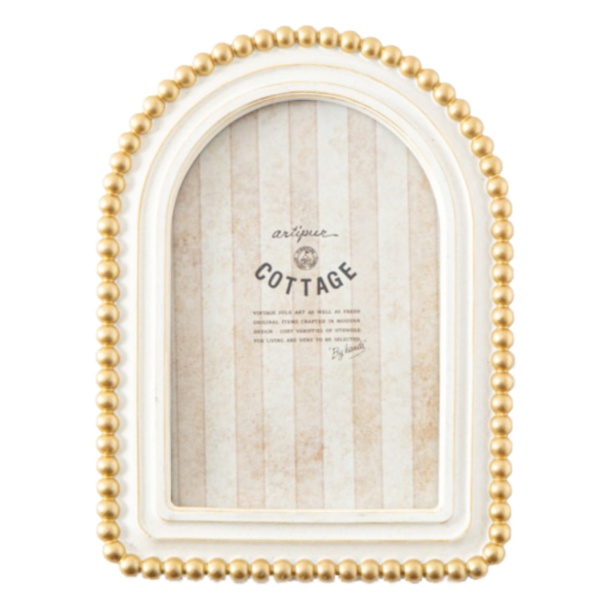 アーチ状の細かい円形のレリーフが美しい、アンティーク調のフォトフレームです。アンティーク風の加工が大切な写真をより魅力的に引き立てます。深みのある表情のデザインは、写真を入れずにただ置くだけでも映えるインテリアになります。
