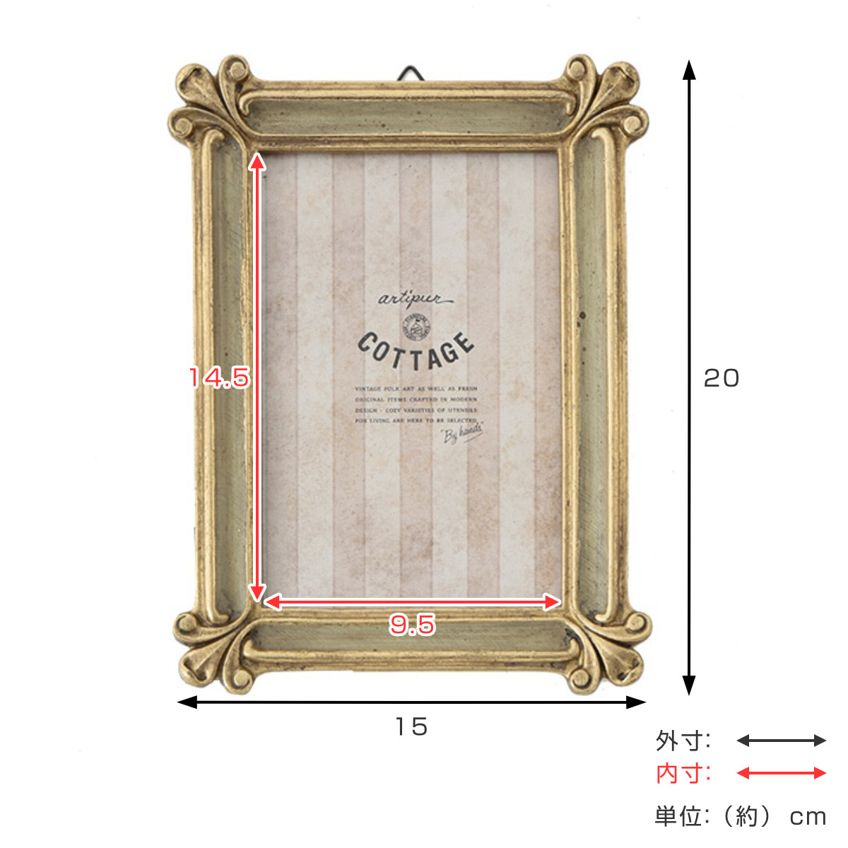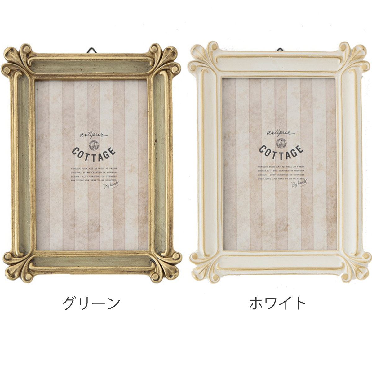 フォトフレーム レクタングルフォトフレーム KG判 レジン ( 写真立て フォトスタンド 写真 フレーム L判 標準プリントサイズ はがきサイズ アンティーク調 ウエディングフォト 壁掛け 置き型 縦 横 ウェルカムスペース ) 【グリーン】