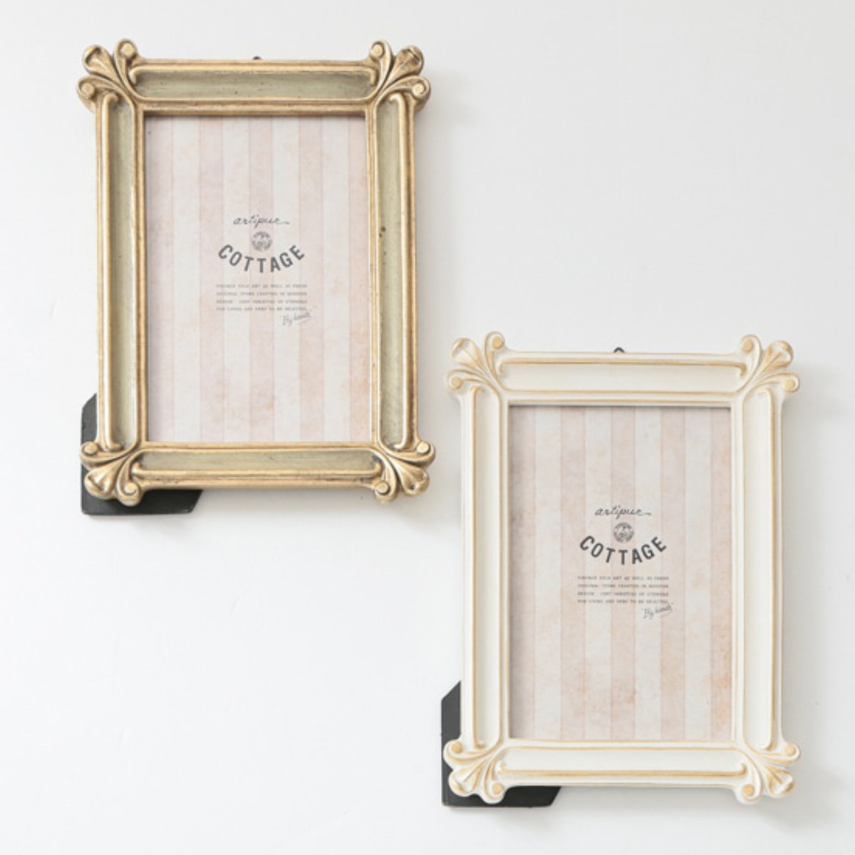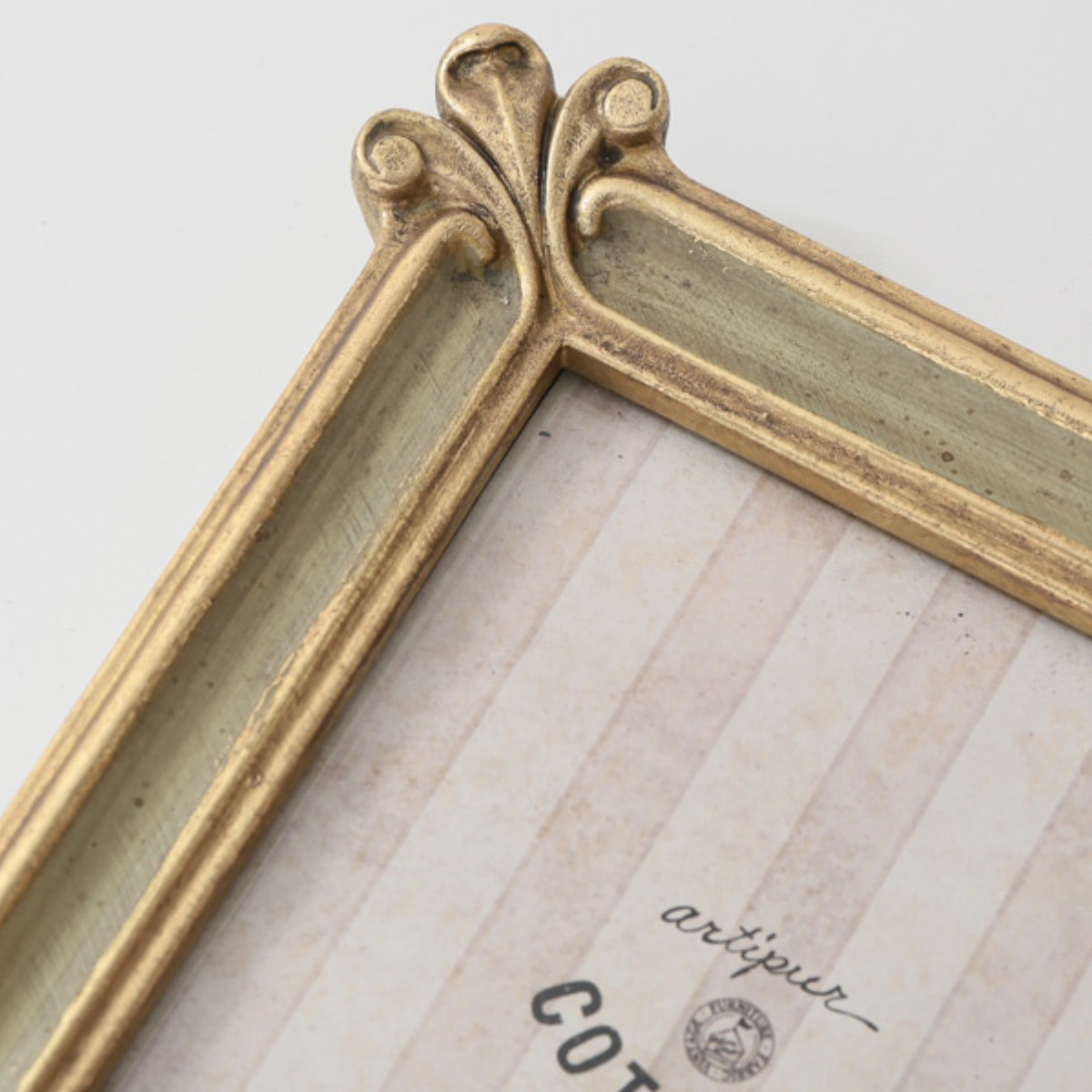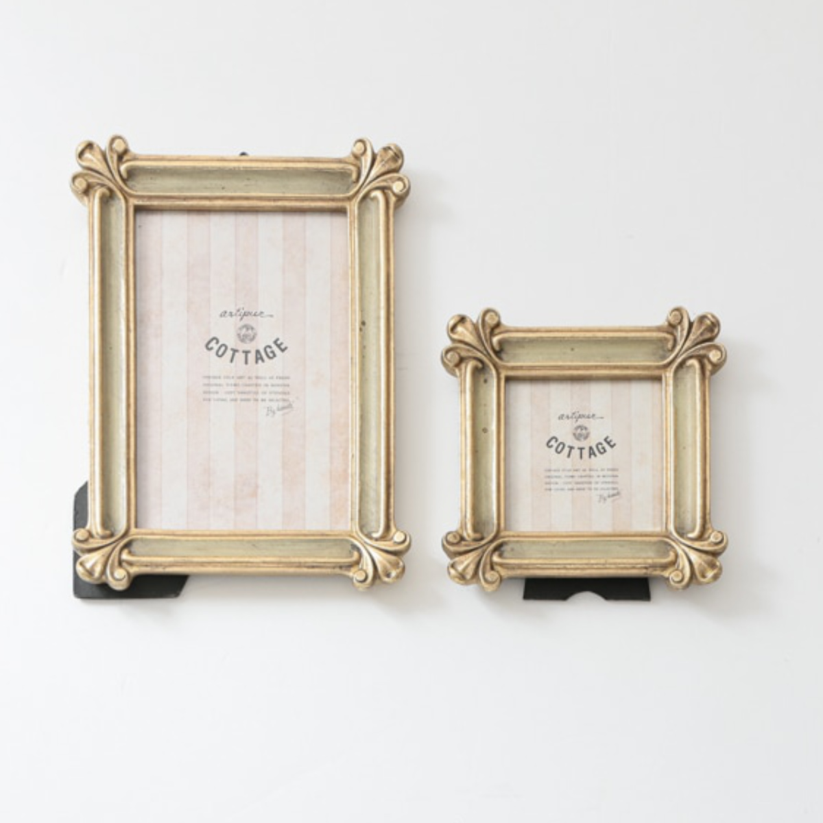 四隅にゴールドの紋様モチーフをあしらったフォトフレームです。アンティーク風の加工が大切な写真をより魅力的に引き立てます。深みのある表情のデザインは、写真を入れずにただ置くだけでも映えるインテリアになります。