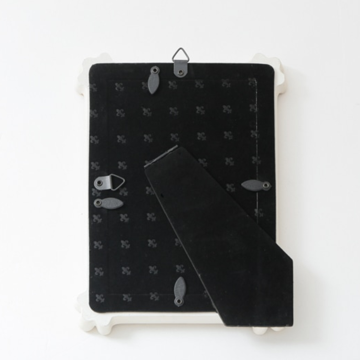 ●フォトスタンドとして立てて置くだけでなく、壁掛け用フックが付いているので壁にも取り付けられます。